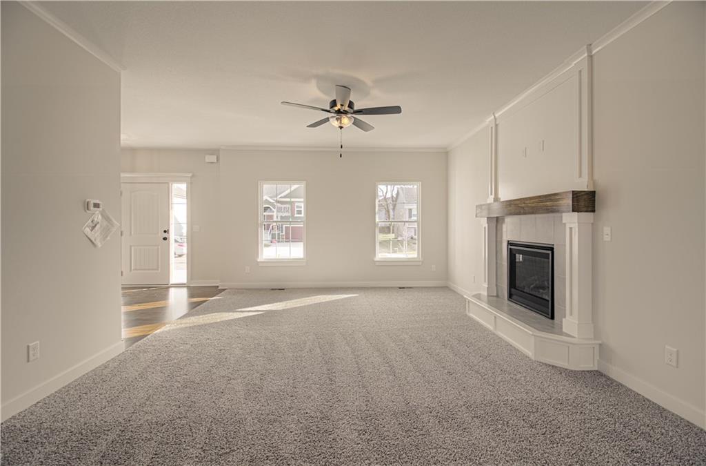The "CAMDEN" by Robertson Construction**COMPLETED AND MOVE-IN READY! Actual Photos of Home! ASK ABOUT OUR BUILDER RATE BUYDOWN INCENTIVE! A stunning 2-story home offering 4 bedrooms, 2.5 bathrooms, and a 2-car garage. A fantastic value in new construction! The Main Level features a bright, Open Living Room with a Gas Fireplace, Large Kitchen with Quartz Countertops, Custom Built Cabinets with Soft Close Cabinet Doors, Island with Storage, Dining Area, a convenient Half Bath, and a Covered Deck perfect for entertaining. Upstairs, you’ll find a Beautiful Master Suite with a Private Master Bath, three additional bedrooms (oversized 4th bedroom), full bathroom and the convenience of Bedroom-Level Laundry. A large unfinished basement for storage or a future finish. Located in the highly-rated Kearney School District!