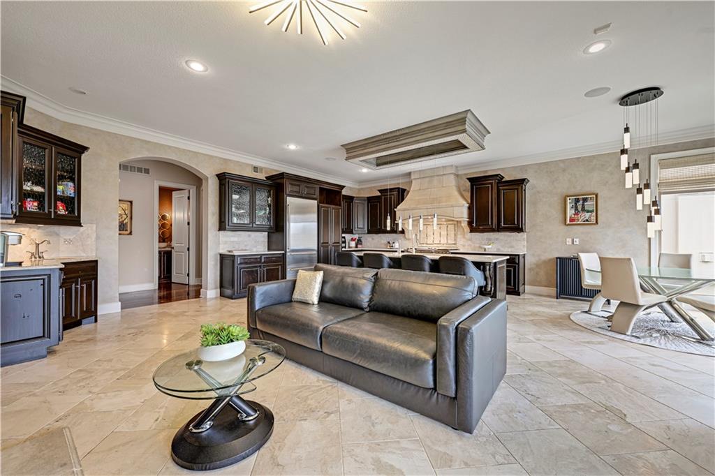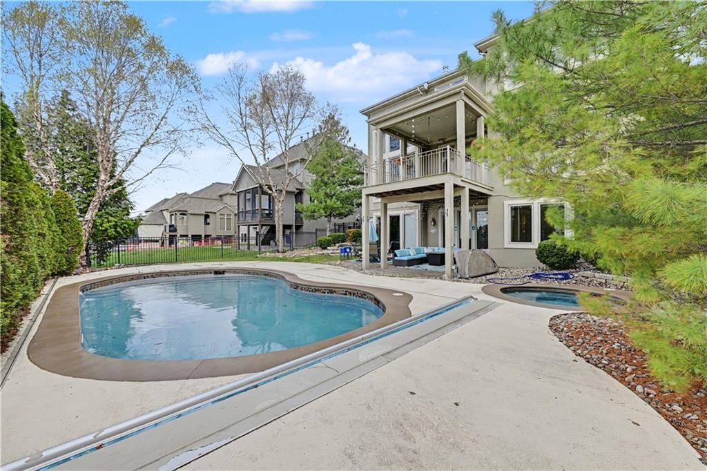 Experience elevated living in this exceptional, one-of-a-kind residence designed for unforgettable family living and effortless entertaining. Every detail has been thoughtfully curated to impress, from the resort-style outdoor retreat to the high-end finishes throughout all three levels. Step outside to your private oasis featuring a stunning in-ground gunite saltwater pool, an oversized spa, and lush, professionally designed landscaping—perfect for relaxing or hosting gatherings. Inside, the walk-out lower level is an entertainer’s dream, complete with a full theater space, a sophisticated bar, and a dedicated kids’ movie and playroom. The heart of the home is a chef’s kitchen equipped with top-tier appliances, ideal for both everyday living and upscale entertaining. Luxurious materials such as travertine, marble, and natural stone add elegance and timeless appeal throughout. Modern convenience meets refined design with advanced home automation, including motorized shades, a seamless whole-home audio system extending to outdoor spaces, and beautifully appointed smart bathrooms with cutting-edge features. Situated on a quiet, family-friendly cul-de-sac, this home offers a rare combination of privacy, security, and community charm. A striking floating staircase serves as a dramatic architectural centerpiece, while the home’s distinction is further elevated by its feature as a showcase property in KC Homes & Style Magazine. This extraordinary custom-built estate is truly a standout—where luxury, comfort, and lifestyle come together.