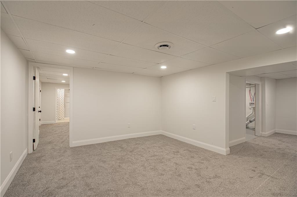 This adorably updated home marries traditional living space of a classic ranch with fresh design. The updated kitchen offers quartz countertops and new appliances. Both bathrooms have been updated featuring new tile work, vanities, and fixtures. The finished basement offers a second living room and additional 4th bedroom with ensuite bath.