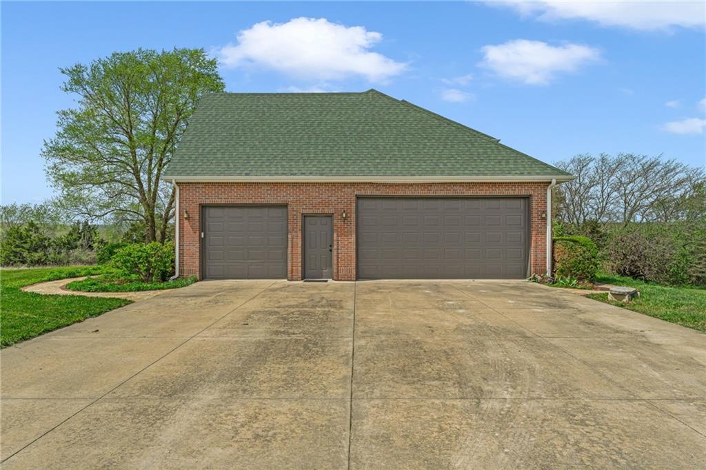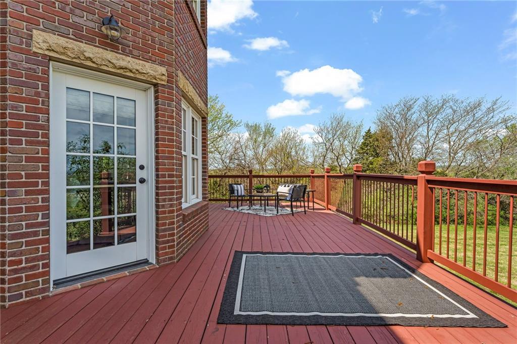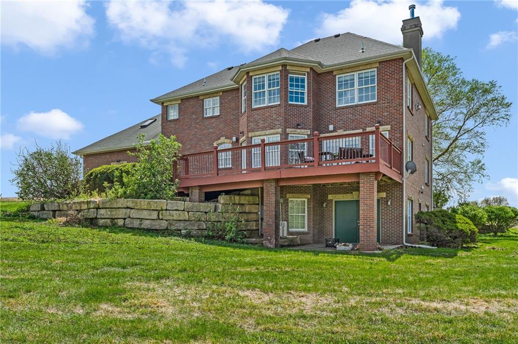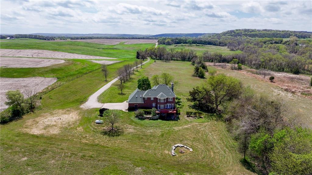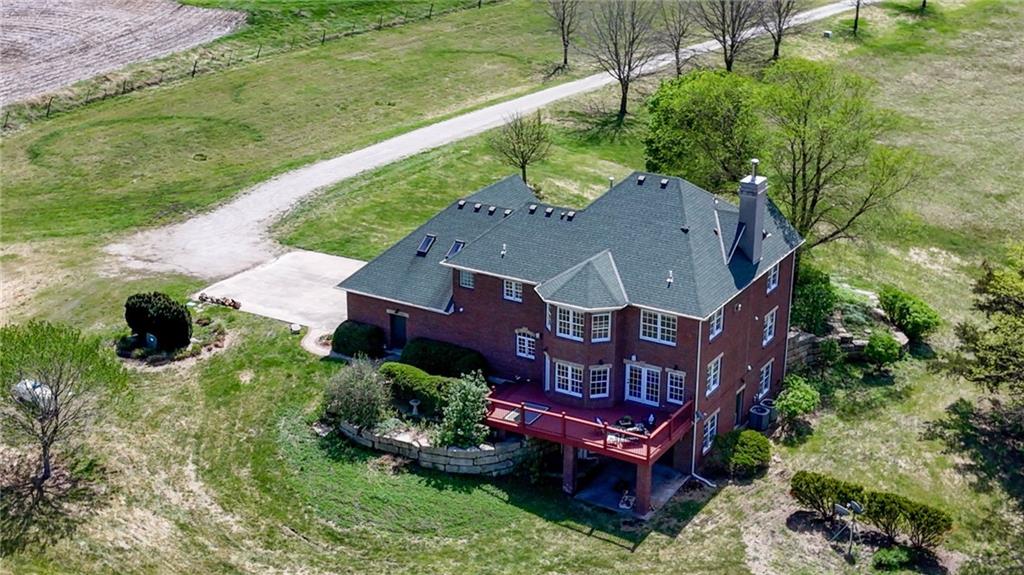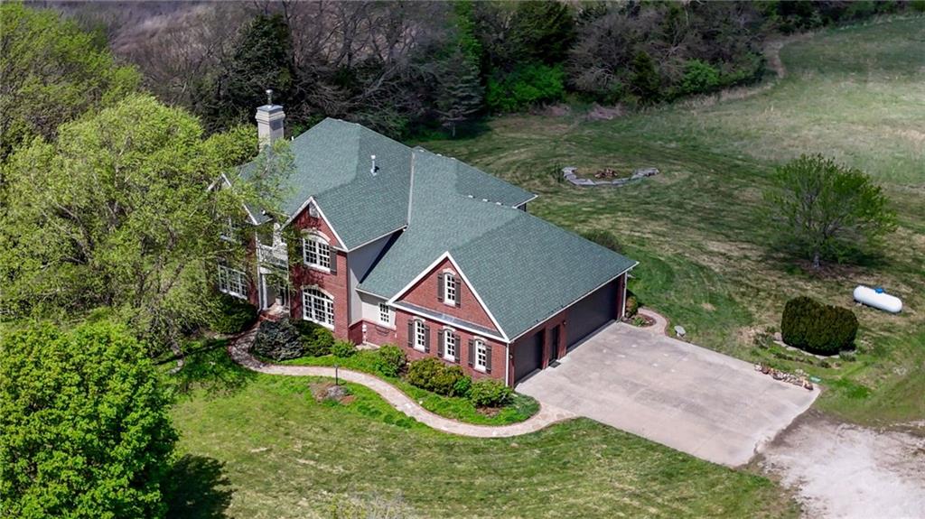 Don't miss this incredibly rare opportunity to own a beautiful estate on a 40-acre lake. Set on 45 acres near Baldwin City, this exceptional lakefront home offers seclusion and serene nature that's rich with wildlife. The property features direct shoreline access, ideal for fishing and water recreation. A spacious deck extends the living area outdoors and captures stunning views of the surrounding countryside. Inside, more than 3,500 square feet includes 4 bedrooms and 5 bath areas. The kitchen features soapstone countertops, a gas range, extensive cabinetry, and an oversized island with well-planned storage. A casual dining area sits just off the kitchen, while a formal dining room with crown molding provides a more defined space for gatherings. The living room is centered around a gorgeous fireplace with an oak mantel and insert, creating a warm focal point while entertaining guests. The primary suite offers a spacious retreat, complete with a jetted tub, walk-in shower, and a large walk-in closet. The walkout lower level is unfinished and ready for future expansion. It includes a nearly 800 sq ft concrete storm room beneath the garage, complete with built-in shelving. Additional features include newer roof, zoned HVAC, multiple water heaters, a water softener, and a humidifier. Thoughtful landscaping enhances the home’s natural surroundings. Access is convenient, with primarily paved roads and only a short gravel approach, an uncommon advantage for a property of this size. This is a rare opportunity to experience private lakefront living that is hard to come by.