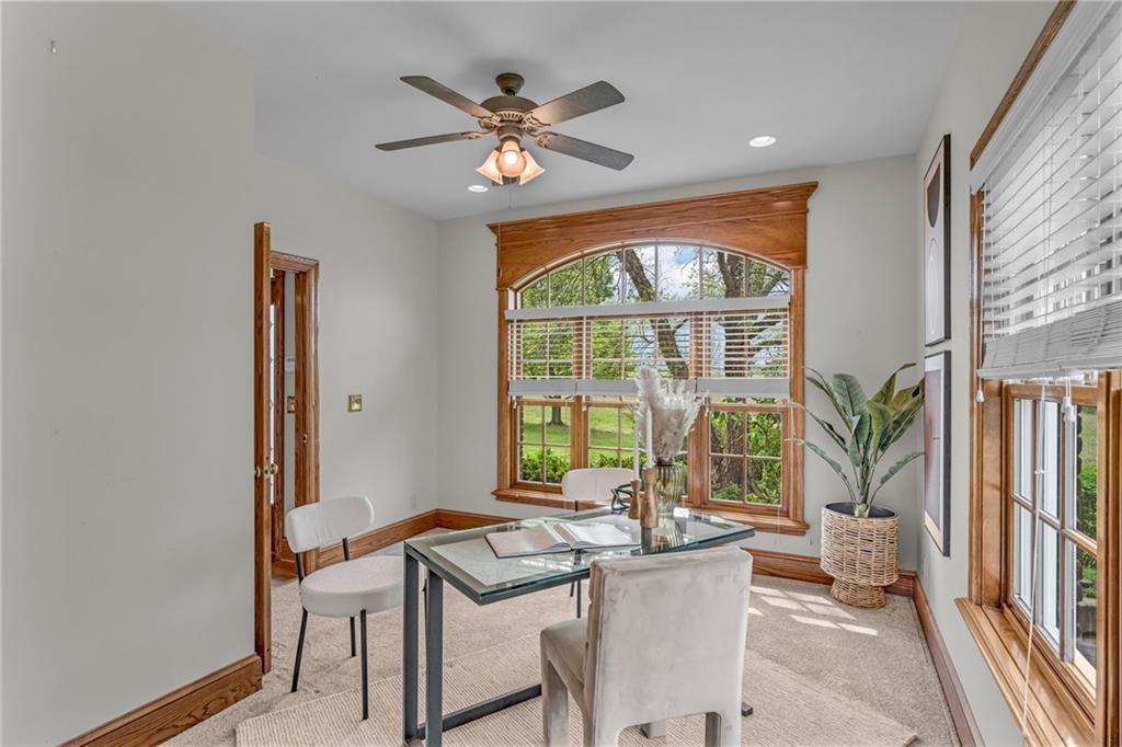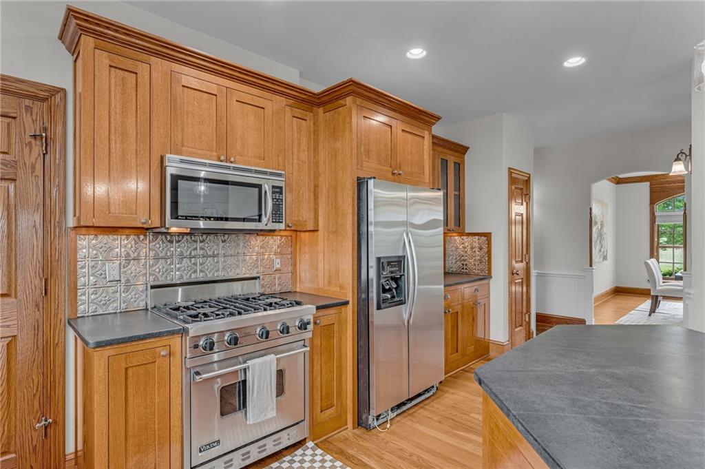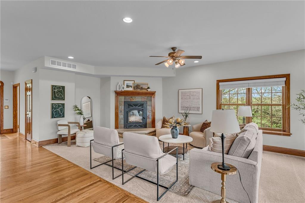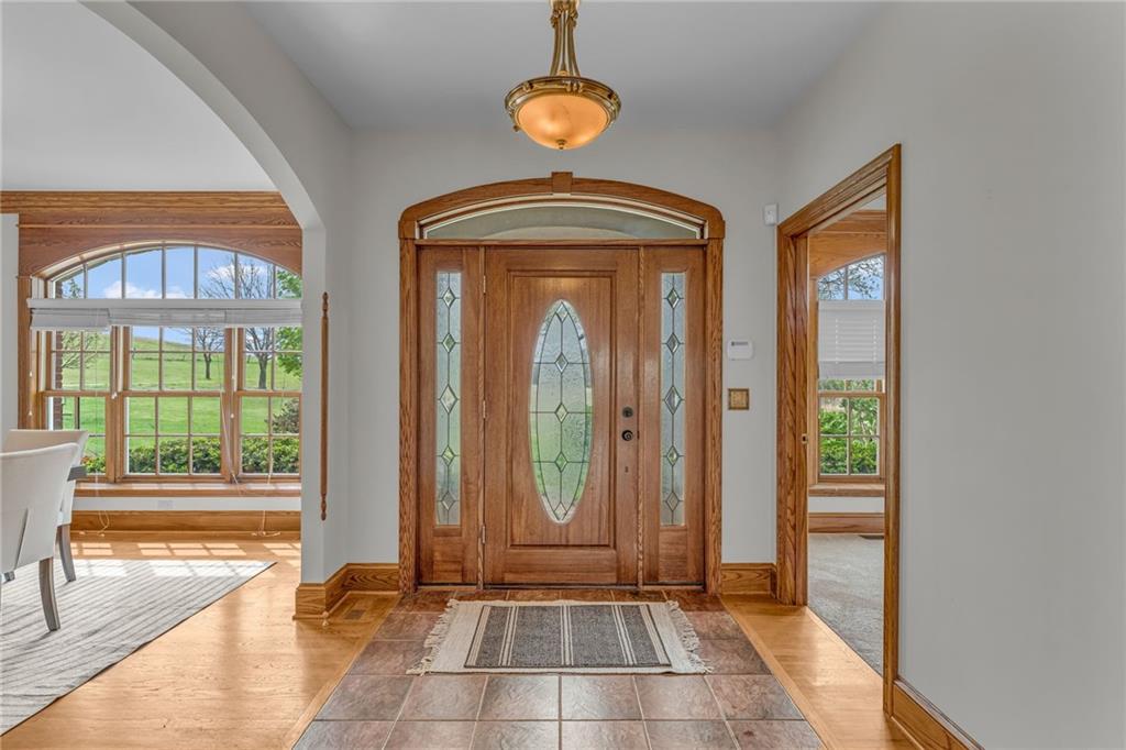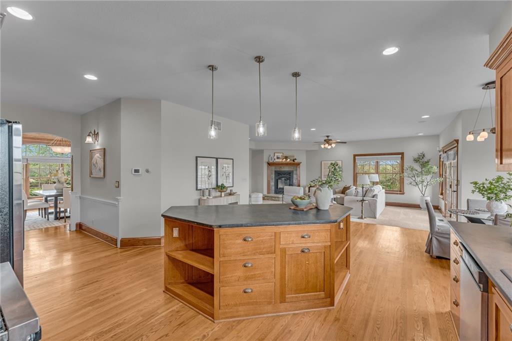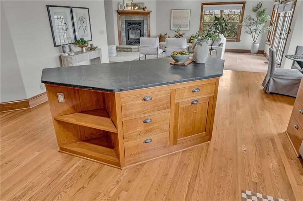 Don't miss this incredibly rare opportunity to own a beautiful estate on a 40-acre lake. Set on 45 acres near Baldwin City, this exceptional lakefront home offers seclusion and serene nature that's rich with wildlife. The property features direct shoreline access, ideal for fishing and water recreation. A spacious deck extends the living area outdoors and captures stunning views of the surrounding countryside. Inside, more than 3,500 square feet includes 4 bedrooms and 5 bath areas. The kitchen features soapstone countertops, a gas range, extensive cabinetry, and an oversized island with well-planned storage. A casual dining area sits just off the kitchen, while a formal dining room with crown molding provides a more defined space for gatherings. The living room is centered around a gorgeous fireplace with an oak mantel and insert, creating a warm focal point while entertaining guests. The primary suite offers a spacious retreat, complete with a jetted tub, walk-in shower, and a large walk-in closet. The walkout lower level is unfinished and ready for future expansion. It includes a nearly 800 sq ft concrete storm room beneath the garage, complete with built-in shelving. Additional features include newer roof, zoned HVAC, multiple water heaters, a water softener, and a humidifier. Thoughtful landscaping enhances the home’s natural surroundings. Access is convenient, with primarily paved roads and only a short gravel approach, an uncommon advantage for a property of this size. This is a rare opportunity to experience private lakefront living that is hard to come by.