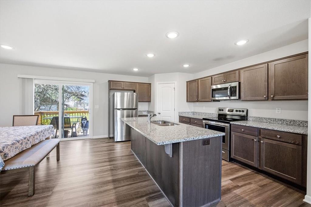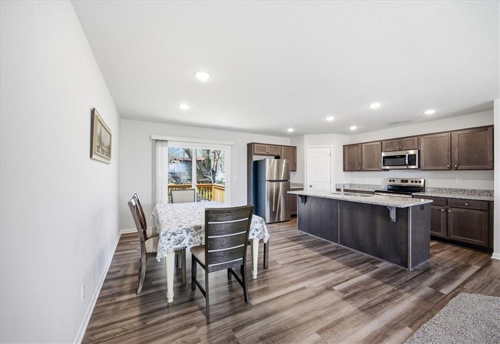 Stunning split-entry home with a bright, open-concept on the main level. The kitchen is loaded with cabinets and a generous island that flows seamlessly into the living room and dining area — ideal for everyday living and entertaining. This home offers 3 bedrooms and 2.5 bathrooms, Main-floor laundry adds convenience, and the oversized master bedroom is a private retreat. Finished basement with a handy half bath for extra living space. Step outside to a back deck perfect for relaxing or entertaining, There's plenty of storage in the 2 car garage.