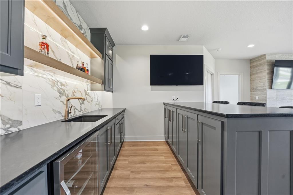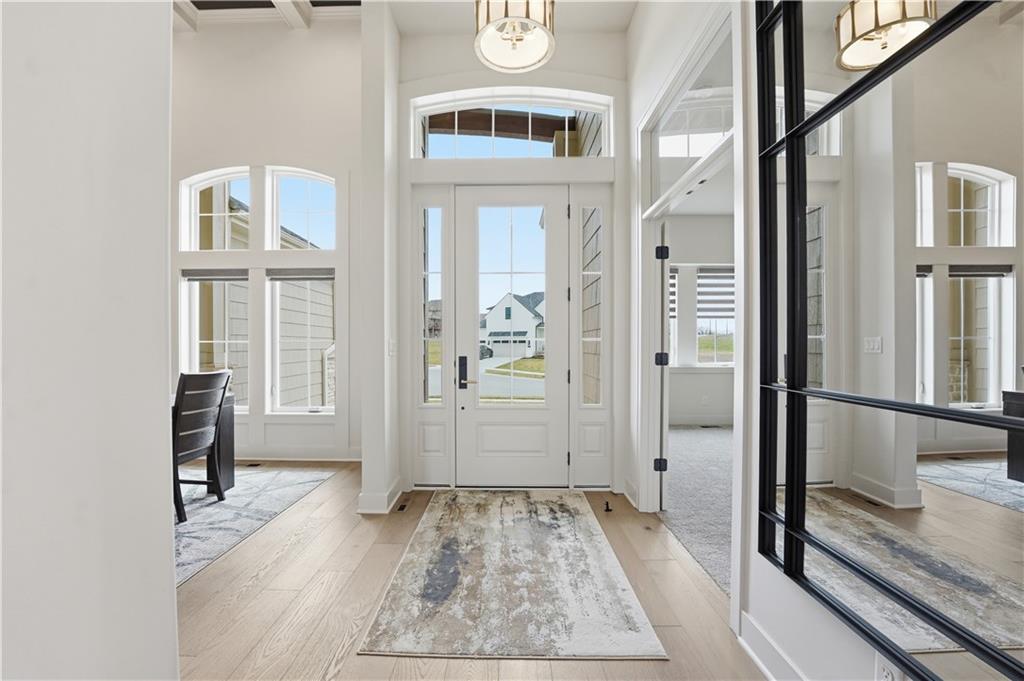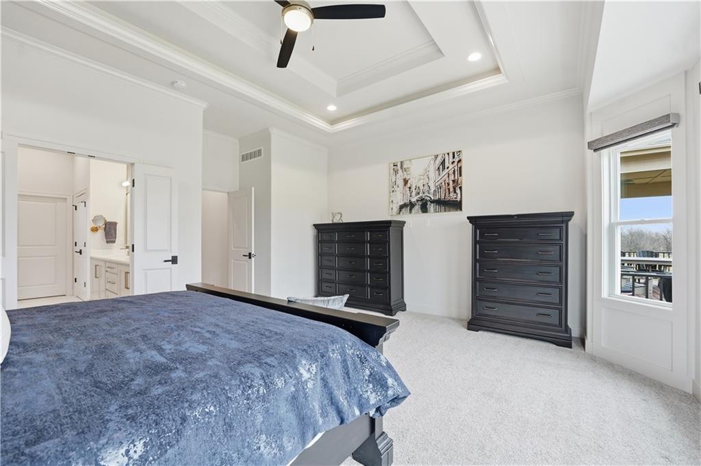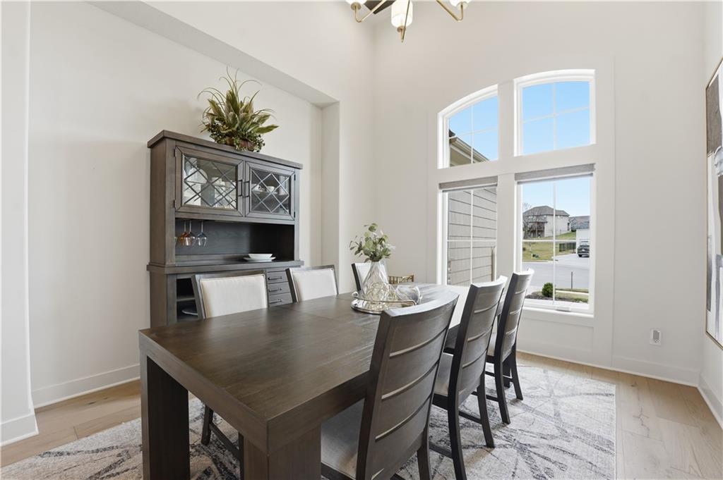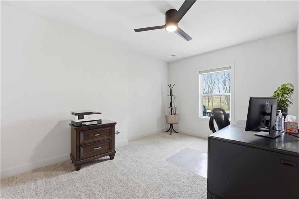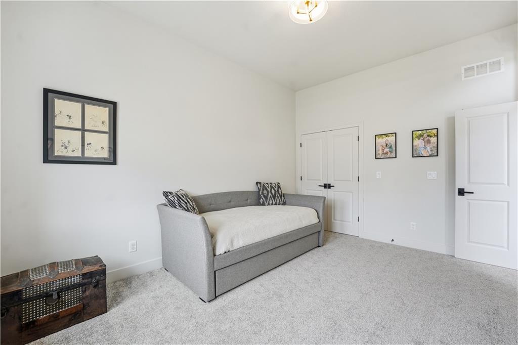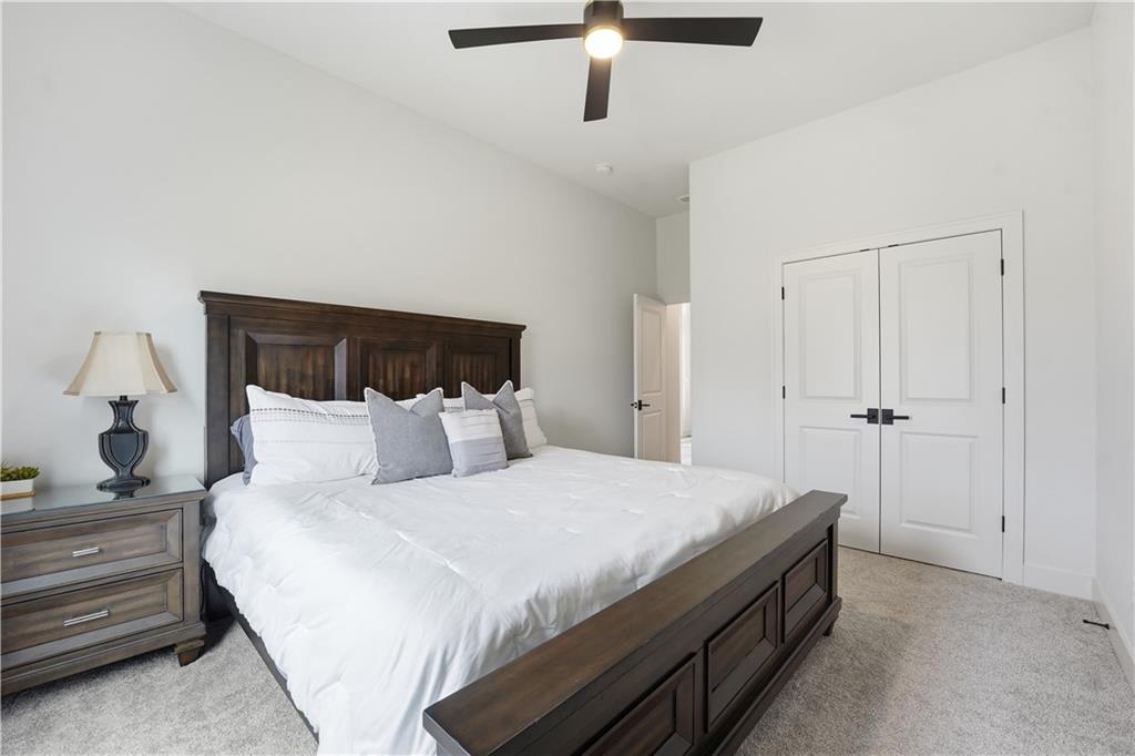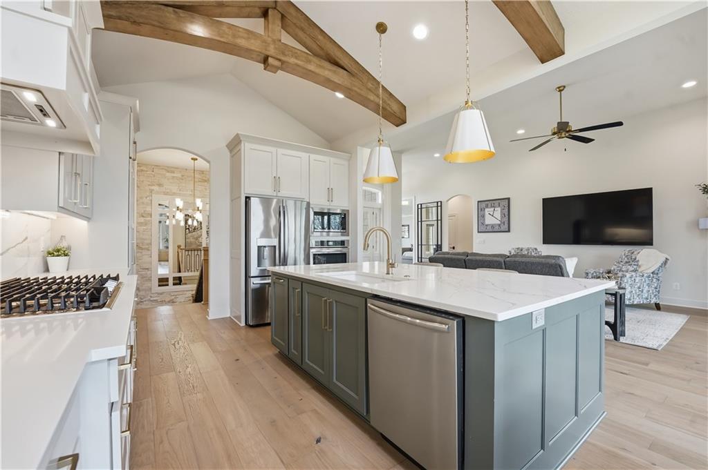Impeccable finishes and better than new upgrades! Perfectly situated on a quiet cul-de-sac and positioned along the teebox at Shoal Valley Golf Course, this stunning reverse 1.5-story residence, completed in 2025, offers an unparalleled blend of luxury, expansive design, & breathtaking views. Step inside & be greeted by soaring ceilings, abundance of natural light, and exquisite craftsmanship throughout. The elegant open-concept main level is anchored by a beautiful great room featuring a statement fireplace & sliding glass doors that lead to an expanded deck—creating a seamless indoor/outdoor experience while showcasing sweeping golf course vistas & unforgettable sunsets. A dedicated dining room offers an elegant setting for hosting. The kitchen is a true culinary showpiece, thoughtfully designed w/striking wood ceiling beam accents, stunning quartz countertops & island & custom cabinetry. A spacious walk-in pantry & light-filled breakfast area complete this exceptional space. The primary suite on the main level is a serene retreat, positioned to capture peaceful golf course views. The spa-inspired bathroom elevates everyday living w/a luxurious double-head wraparound shower & refined finishes. Two additional BRs & a full bath on the main provide comfort & versatility for family or guests. The WO lower level filled w/natural light is the perfect gathering hub featuring a sophisticated wet bar, adjacent butler’s pantry & family room offering ample space for a pool table/media area. The LL also features a private BR w/full bath, a bonus BR/office & dedicated space for a theater room—ideal for movie nights or game-day experiences. Ideally located in Shoal Creek Valley The Preserve, this home is part of a vibrant lifestyle community offering an array of amenities including shops, dining, neighborhood market, swimming pools, private water park and green spaces! Nearby medical facilities, retail, & convenient highway access, puts everything you need within easy reach.