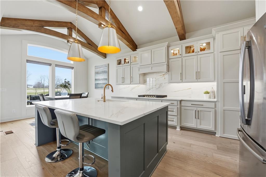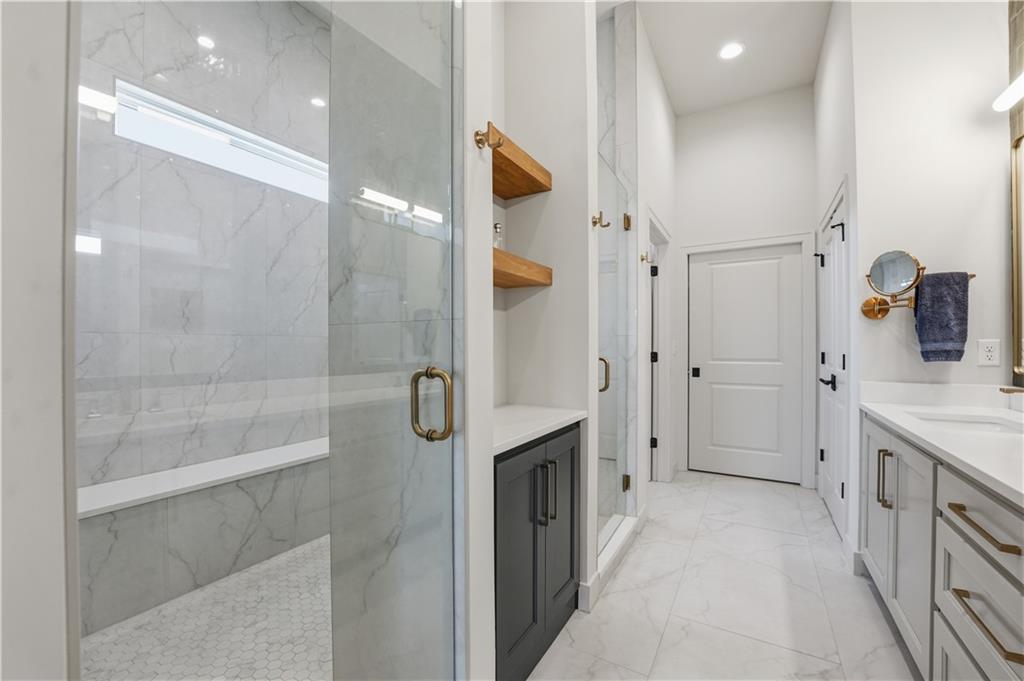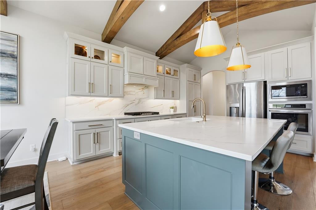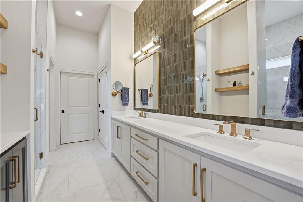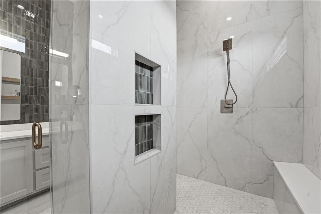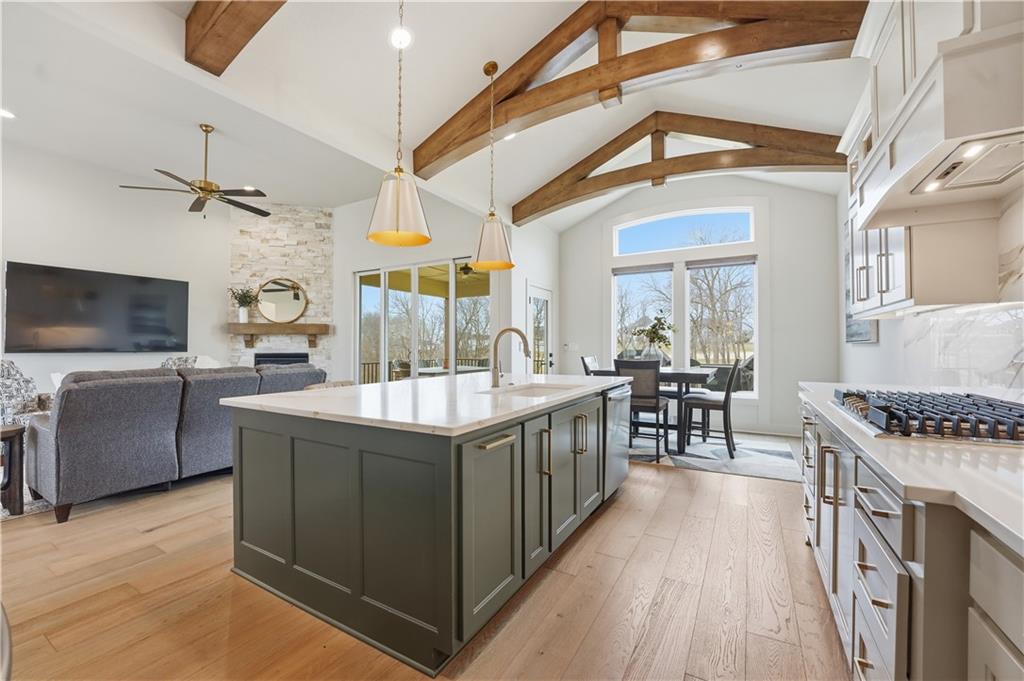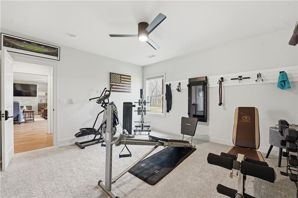 Impeccable finishes and better than new upgrades! Perfectly situated on a quiet cul-de-sac and positioned along the teebox at Shoal Valley Golf Course, this stunning reverse 1.5-story residence, completed in 2025, offers an unparalleled blend of luxury, expansive design, & breathtaking views. Step inside & be greeted by soaring ceilings, abundance of natural light, and exquisite craftsmanship throughout. The elegant open-concept main level is anchored by a beautiful great room featuring a statement fireplace & sliding glass doors that lead to an expanded deck—creating a seamless indoor/outdoor experience while showcasing sweeping golf course vistas & unforgettable sunsets. A dedicated dining room offers an elegant setting for hosting. The kitchen is a true culinary showpiece, thoughtfully designed w/striking wood ceiling beam accents, stunning quartz countertops & island & custom cabinetry. A spacious walk-in pantry & light-filled breakfast area complete this exceptional space. The primary suite on the main level is a serene retreat, positioned to capture peaceful golf course views. The spa-inspired bathroom elevates everyday living w/a luxurious double-head wraparound shower & refined finishes. Two additional BRs & a full bath on the main provide comfort & versatility for family or guests. The WO lower level filled w/natural light is the perfect gathering hub featuring a sophisticated wet bar, adjacent butler’s pantry & family room offering ample space for a pool table/media area. The LL also features a private BR w/full bath, a bonus BR/office & dedicated space for a theater room—ideal for movie nights or game-day experiences. Ideally located in Shoal Creek Valley The Preserve, this home is part of a vibrant lifestyle community offering an array of amenities including shops, dining, neighborhood market, swimming pools, private water park and green spaces! Nearby medical facilities, retail, & convenient highway access, puts everything you need within easy reach.