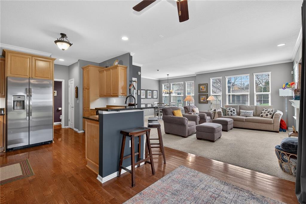 Rare opportunity in a beautiful maintenance-free living, gated community in the heart of Overland Park! This well-maintained two-story townhouse features granite countertops, pantry with roll-out shelves, and newer stainless-steel microwave, stove/oven, and refrigerator. Off the kitchen is the screened-in porch that is perfect for morning coffee or evening meals (with a new ceiling fan!). The master bedroom has a beautiful, vaulted ceiling, and his and her closets. The master bath includes a tall double vanity and soaker tub. Two additional bedrooms and a full bathroom are on the second floor. The basement is complete with a wet bar, rec room, non-conforming bedroom with a full bathroom and large walk-in closet! The HOA covers water, trash, recycling, lawn maintenance, snow removal, private street maintenance, exterior of the home, including roof and paint! The exterior was just painted in June 2024. The community is just as amazing as this immaculately maintained home! There are only 24 townhomes in this darling community so grab this one while you can! Recent Updates: Furnace & Water Heater, Top Notch, $14,000 Garage Door Opener....A1.....$1,533 Alarm System, Rueschoff Alarm Systems....$1,100