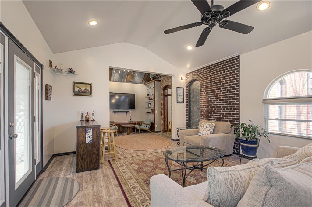 This historical three bedroom home in Liberty Missouri, listed as a national historic landmark, preserves original 1875 craftsmanship while offering modern kitchen, bath, and structural updates. At 225 Groom Street in Groom’s Addition, this rare Italianate residence features restored masonry, remodeled interiors, wraparound porches, and a three car garage with workshop space. This historic home offers a one and a half story layout with a light filled primary suite on the main level and two upstairs bedrooms with oak floors throughout. The east bedroom features stained glass doors that open to the upper wraparound porch, while the north bedroom showcases bay windows and generous natural light. Upstairs bathroom is newly remodeled with a tub and shower and antique fixtures. The foyer welcomes you with a polished wooden staircase, intricate woodwork, and detailed newel posts. The formal living room includes the original fireplace, antique gasolier chandelier, transom windows, and lower porch access. The formal dining room features bay windows, original fireplace, gasolier chandelier, transom window, and stained glass door to the porch. The remodeled kitchen includes stainless steel appliances, KraftMaid cabinetry, and granite countertops, plus a large entry area with laundry and a spacious walk in pantry. The main floor bath is remodeled with marble floors, stained glass, and shower. A separate family or rec room offers accent ceilings, bar, built in media cabinet, and direct access to a private patio. The basement is clean and dry with windows, original fireplace, storage space, and outside access. Exterior improvements include newly tuck pointed masonry, restored concrete and brick foundation, newly poured front and rear concrete driveways, new 6 foot privacy fence, landscaped grounds, and a three car garage with ample storage and workshop area.