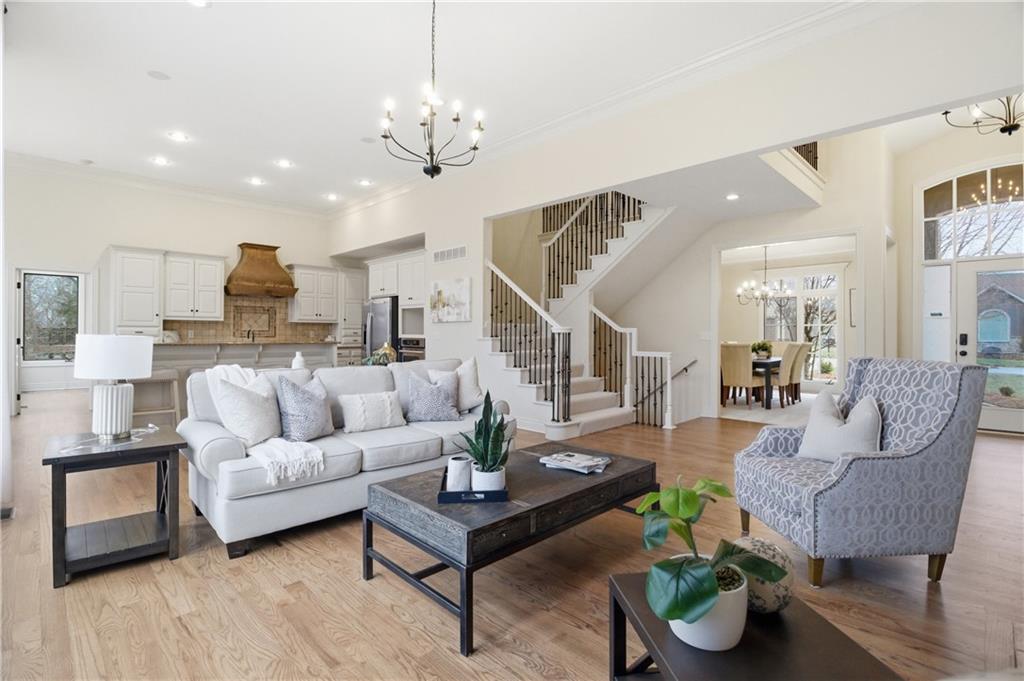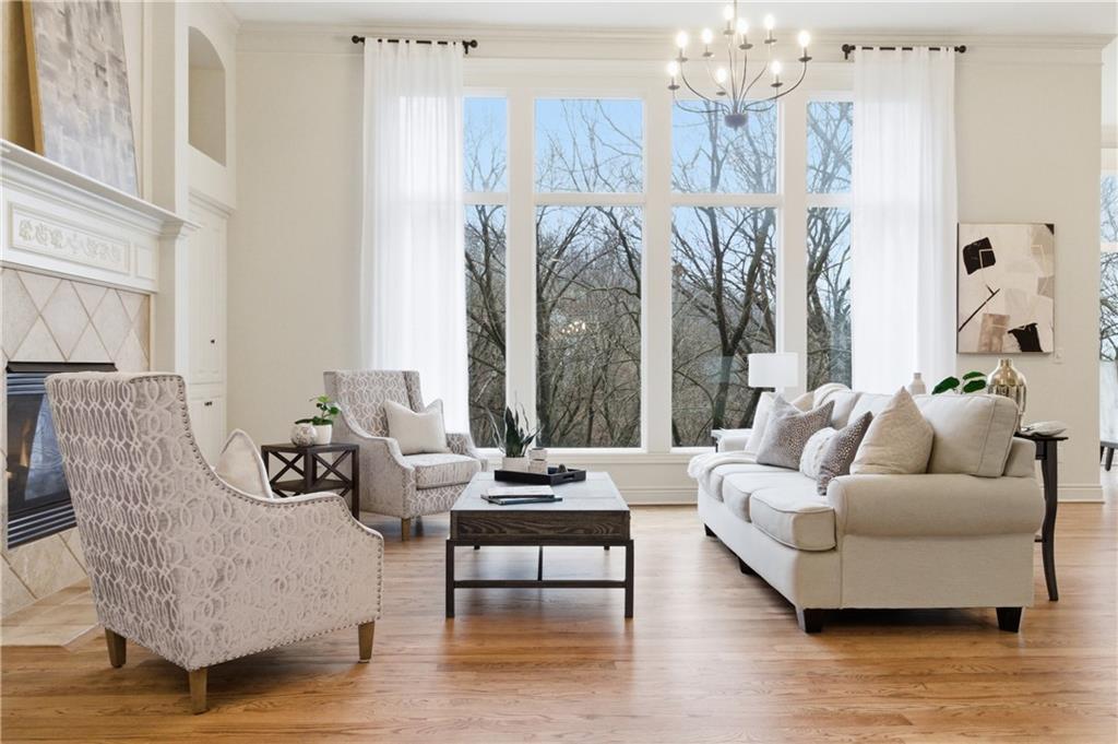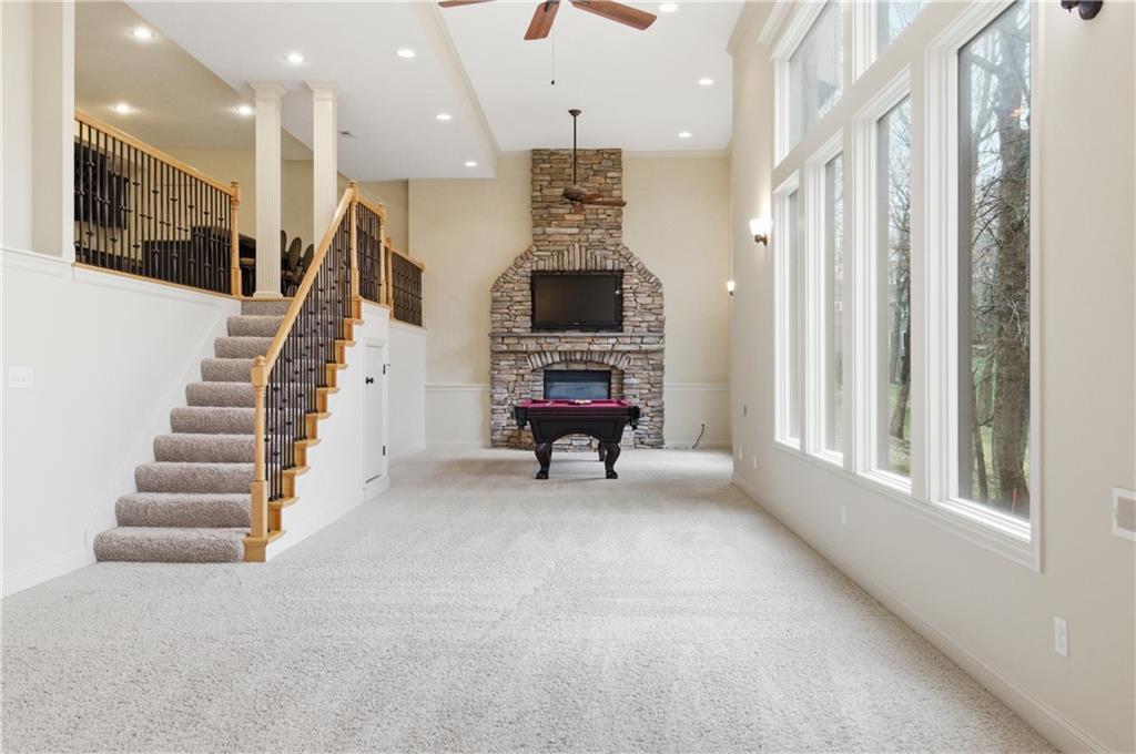WOW! AMAZING PRIVATE TREED LOT! THIS STUNNING 1.5-story home offers nearly 5,000 square feet of living space and is ideally situated on a private, tree-lined lot just under a half acre. BRAND NEW ROOF and gutters have been installed and ready for you to enjoy. Inside, you’ll find soaring 15-foot ceilings, expansive windows, and abundant natural light throughout. The home has been thoughtfully updated with brand new hardwood floors, new carpet on the main and second levels (including the stairs), fresh interior paint, and new fixtures on the main floor creating a truly move-in ready experience. Two new decks great for outdoor entertaining and morning coffee. Two newer HVACS and Hot Water Heater have been installed to make this a low maintenance home. The spacious layout includes 4 bedrooms, 4 full bathrooms, and a half bath, along with a fifth non-conforming bedroom in the lower level. The two-tiered basement features 15-foot ceilings and offers exceptional flexibility for entertaining, recreation, or additional living space with a wet bar, recreation area, theater room and game room. Pool table and exercise equipment will remain with the home. Additional highlights include a suspended garage for bonus space, a newly replaced retaining wall, and a private backyard setting. This home offers the perfect combination of space, updates, and functionality, making it an exceptional opportunity for comfortable living and entertaining.