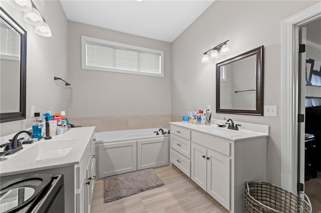 Welcome to this inviting reverse 1.5-story home that offers comfortable living, thoughtful design, and a hard-to-beat location. The main level features an open and functional layout with a spacious kitchen complete with granite countertops, a pantry, and a center island with a sink, making meal prep and entertaining easy. The kitchen flows seamlessly into the breakfast area and great room, where a cozy fireplace is framed by large windows on each side, filling the space with natural light and backyard views. The primary suite provides a relaxing retreat with a bathroom that includes dual sinks, a soaking tub, a separate toilet room, and a large walk-in closet with built-in shelving. Also on the main level is a second bedroom, a full bathroom with shower, and a laundry room with cabinet storage for added convenience. The finished lower level expands the living space with a large family room featuring a big window for natural light, along with third and fourth bedrooms and a full bathroom with a shower over the tub, offering plenty of room for guests, hobbies, or a home office. Step outside to enjoy the deck overlooking a treed, partially fenced backyard, providing a peaceful setting for relaxing or entertaining. Located in a prime area with easy access to downtown and the airport, this home combines space, comfort, and convenience.