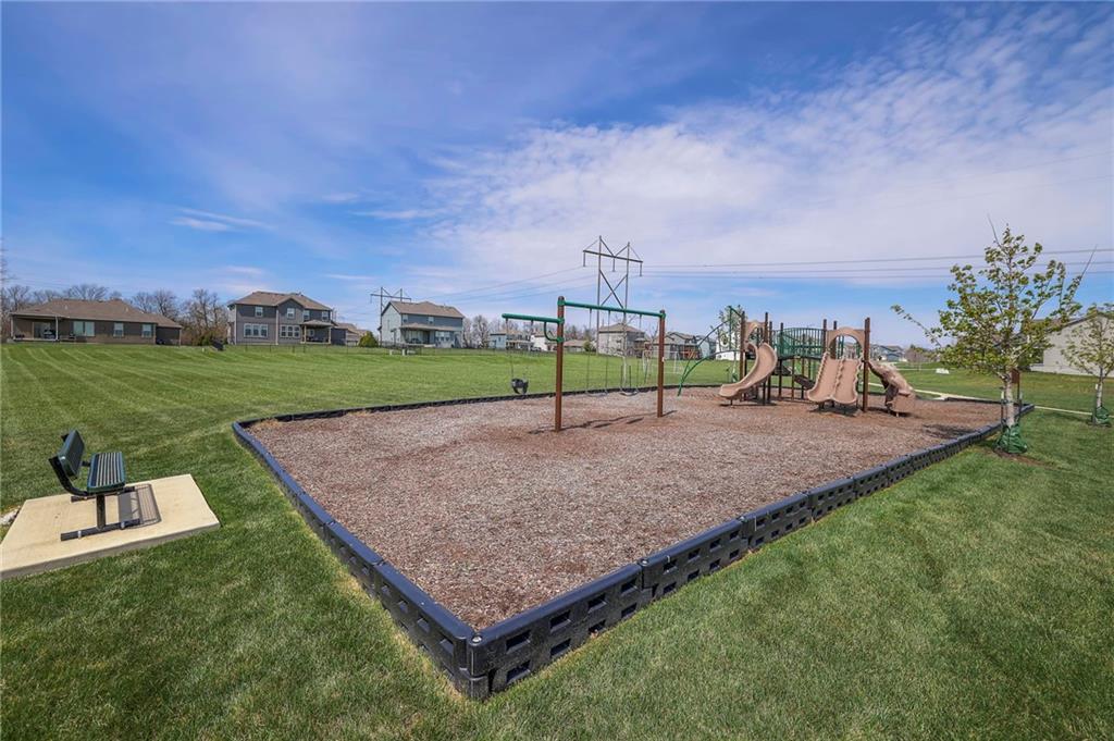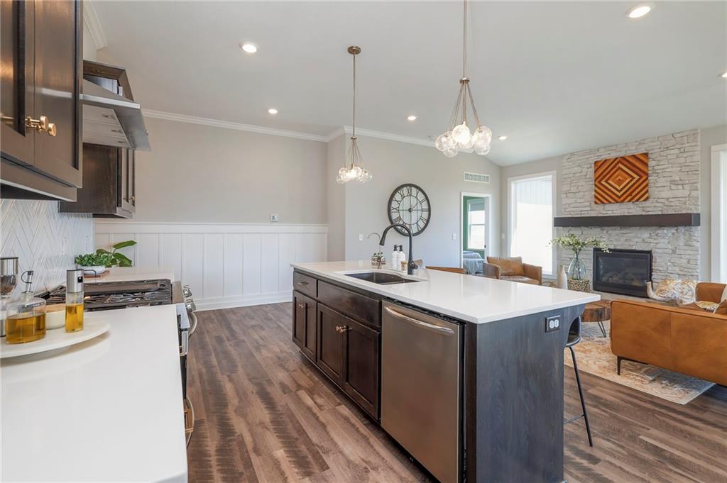 Welcome to effortless, care-free living in this beautifully designed, move-in ready home perfectly situated on a premium corner lot. From the moment you step inside, you'll appreciate the modern open layout, enhanced by engineered hardwood floors and wainscoting entry, upgraded finishes and fresh interior paint. The designer kitchen is truly the heart of the home, featuring custom cabinetry, a large center island, walk-in pantry, gas range and Frigidaire stainless steel appliances-all included. A charming coffee bar adds both function and style, making mornings something to look forward to. The spacious primary suite offers a relaxing retreat with a tray ceiling and large windows that fill the room with natural light, along with a custom tiled shower for a spa-like experience. Additional thoughtful touches include a stylish barn door, ceiling fans, faux wood blinds, upgraded front door, and a wrought iron fence. Cozy up by the gas fireplace with floor to ceiling stacked stone or step outside to enjoy the extra large covered composite covered 13' x 13' deck-perfect for entertaining or unwinding. The finished lower level, daylight basement, provides additional living space, an additional bedroom and full bath with plenty of unfinished storage space to do with what you would like, while the garage offers even extra storage for convenience. This home also includes an active radon mitigation system and a kitchen sink water filtration system for added peace of mind. Enjoy maintenance provided living with lawn care and snow removal for a mandatory $150/month. Community amenities are second to none, featuring a clubhouse, pool, playground, party room, and scenic walking trails. This home truly has it all-style, comfort, and convenience-ready for you to move right in and enjoy!! Why pay for new construction when you can everything you want right here. It's just waiting for you!