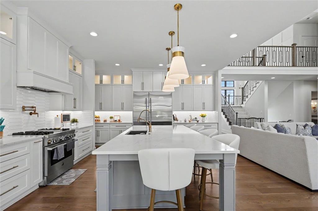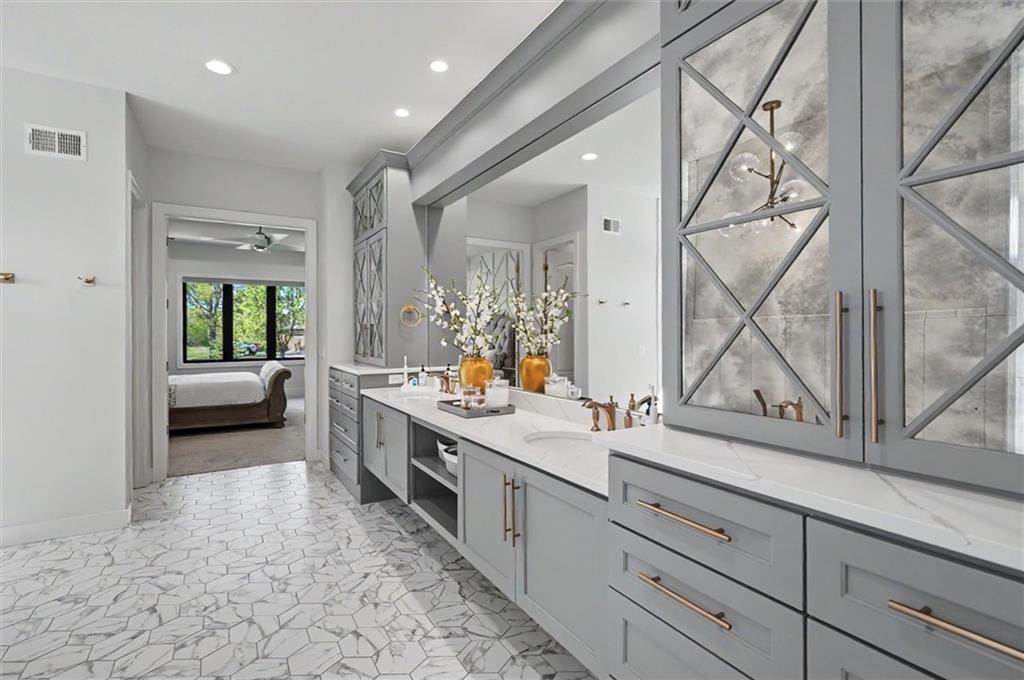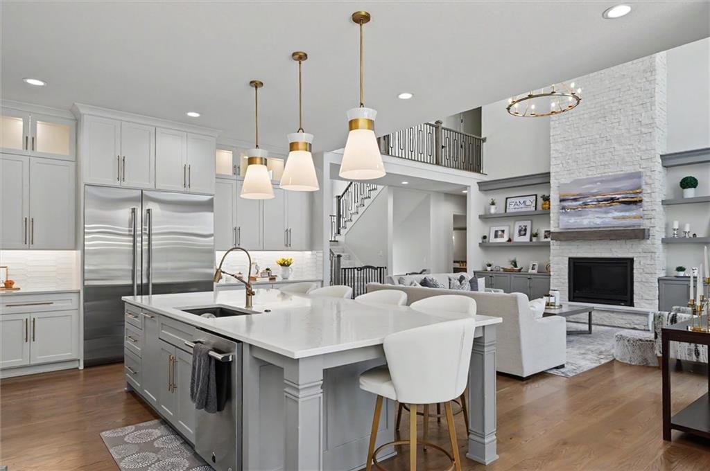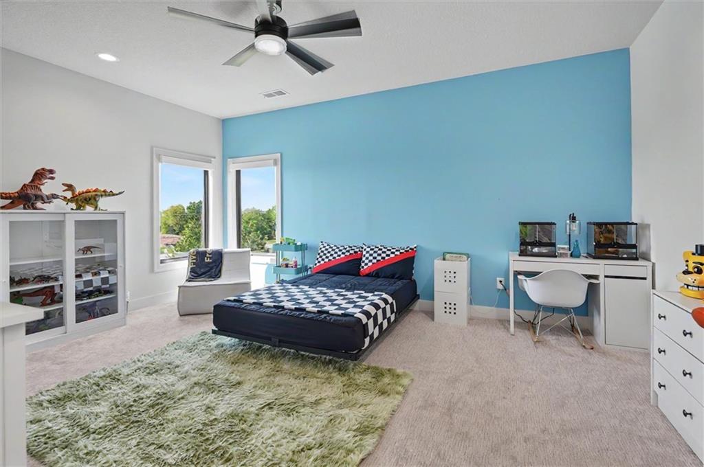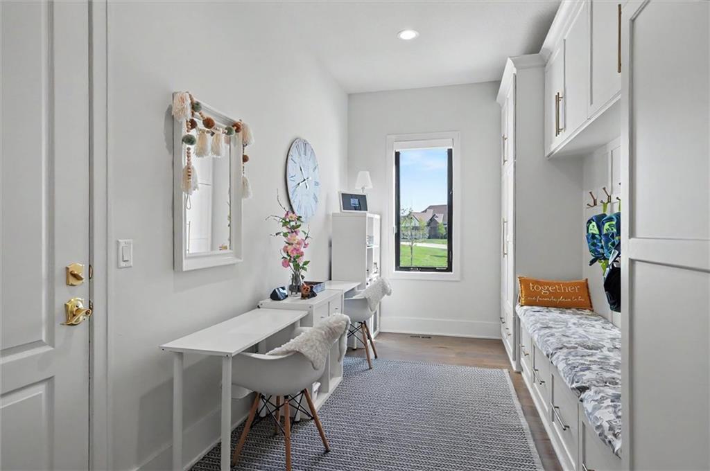 This beautiful Overland Park home boasts over 8,000 sq ft of finished living space with 6 bedrooms and 7 bathrooms in one of Kansas's premier school districts. The main level features a primary suite plus a second bedroom—ideal for guests and main-floor living. Upstairs you will find 3 bedrooms with full ensuite baths, a large laundry and 2 dedicated office spaces, offering flexible work-from-home or study options. Walkout lower level is filled with natural light and includes an additional bedroom, bathroom, theatre room, gym, and large rec space. The backyard is built for entertaining with a gunite pool directly off the patio, built-in outdoor kitchen, and fire pit.