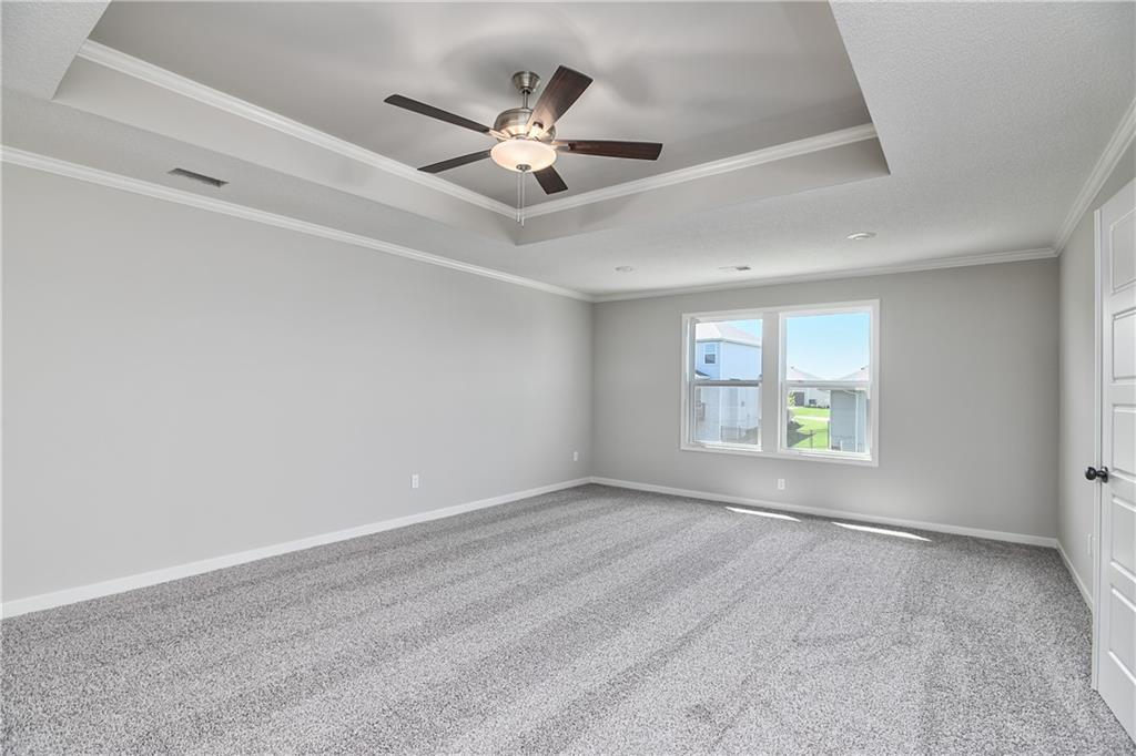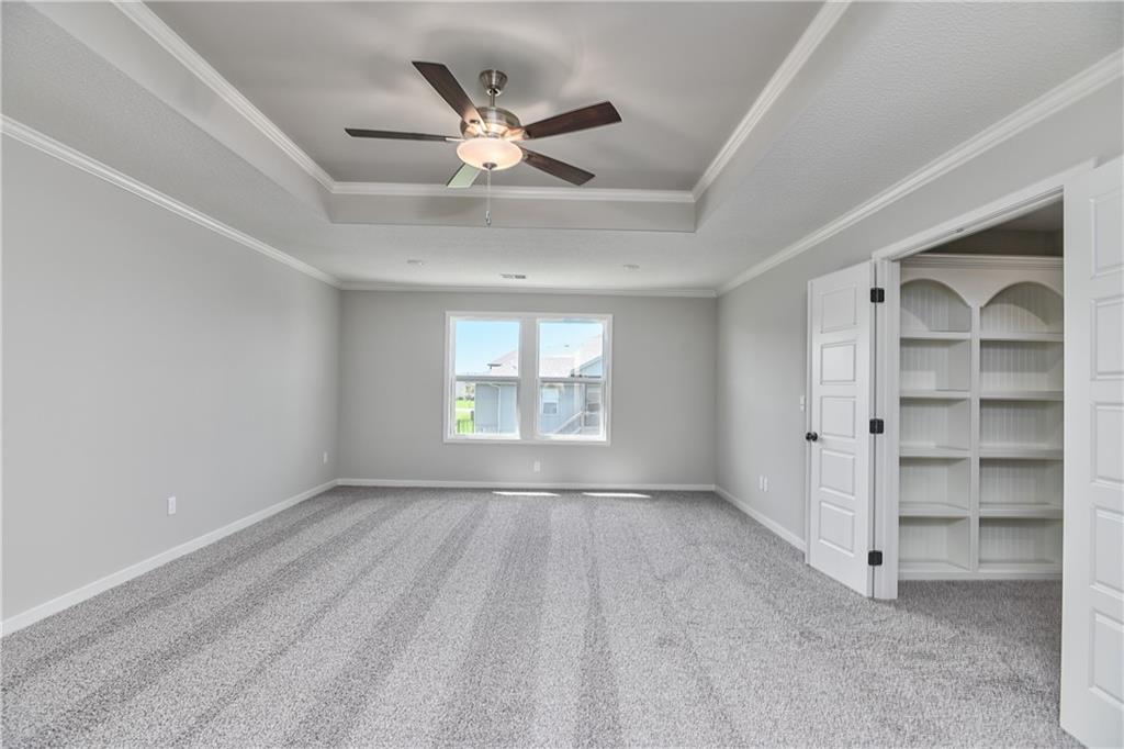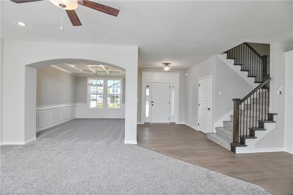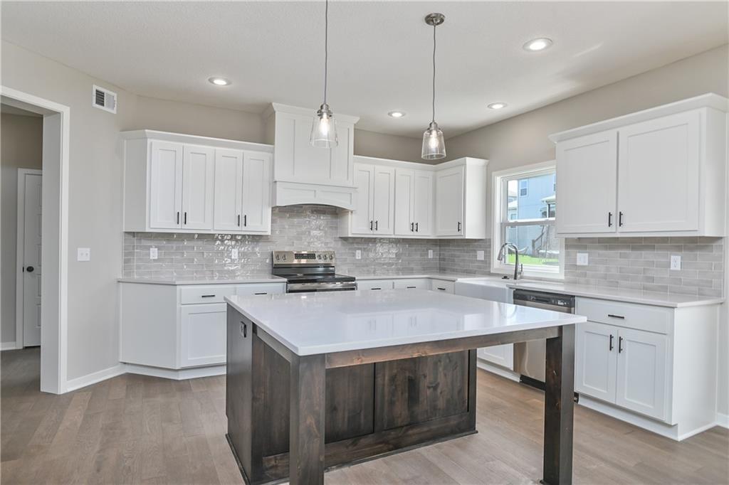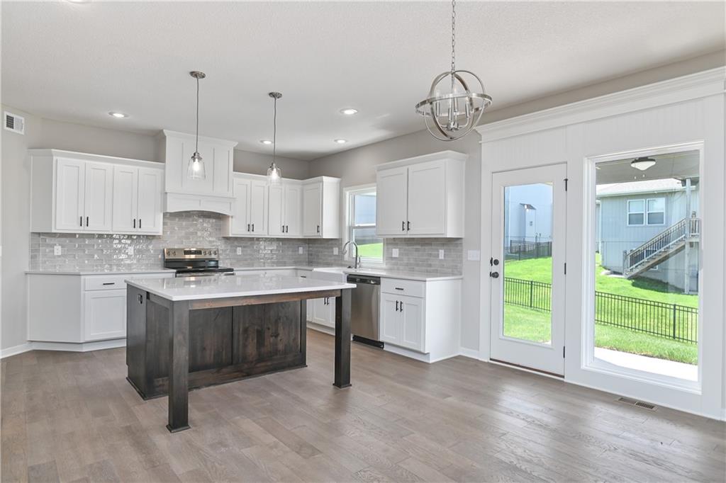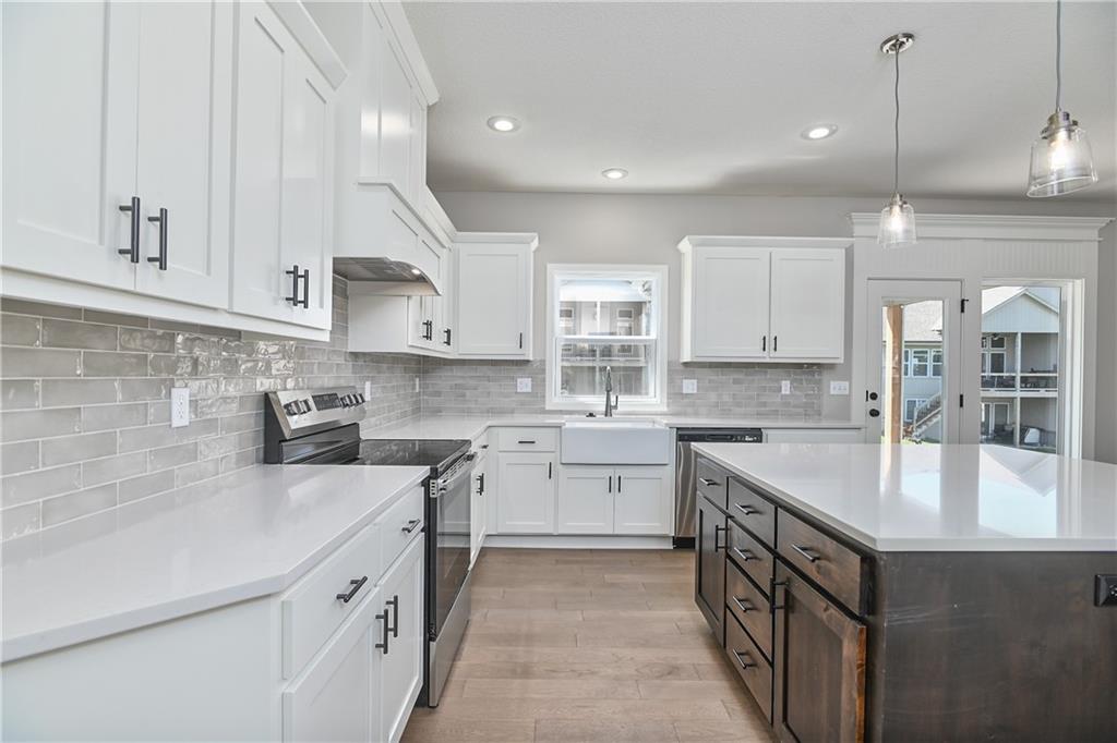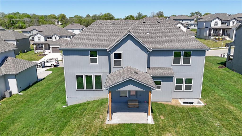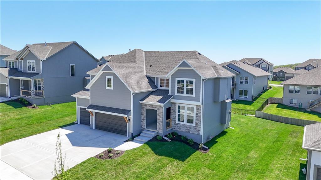 The popular Levi II by Prieb Homes is now available on a beautiful flat lot. This updated version of the beloved original Levi plan offers expanded square footage and premium upgrades throughout. The open-concept main floor features a spacious kitchen and breakfast area, a larger granite center island with ample seating, and upgraded granite countertops in the kitchen. Kitchen offers soft closet doors and drawers. Enjoy versatile living with a main floor flex room—perfect for a home office or 5th bedroom—plus a mud room with boot bench and entry closet. Upstairs, the expanded master suite boasts a separate sitting area, larger walk-in closet for 2 different sections, and an upgraded primary bath with a freestanding tub. The laundry room has been enhanced with additional workspace, and the open loft with window provides extra living space. Located within walking distance to Lake Olathe, this home also offers access to neighborhood amenities including trails, a pool, and playground. Don’t miss your chance to own this upgraded and spacious home in a prime location!