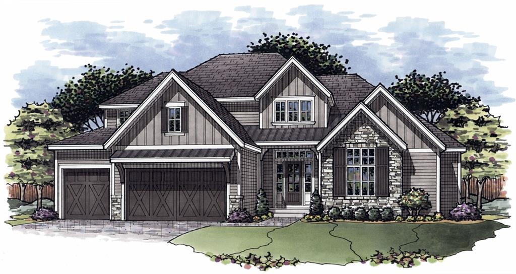 ROOF STAGE—STILL TIME TO PERSONALIZE! Award-winning “Providence” 1.5-story by Rodrock Homes in sought-after Sundance Ridge and Blue Valley Schools! This stunning plan showcases dramatic architecture with a curved staircase, illuminated catwalk, and a soaring 2-story great room with floor-to-ceiling stone fireplace. Gourmet kitchen features oversized island, high-end finishes, walk-in pantry, and opens to a bright breakfast nook with full slider to covered lanai—perfect for indoor/outdoor living! Main-level primary suite offers spa-like bath with dual vanities, freestanding tub, double-headed glass shower, and a walk-in closet connected to laundry. Upstairs: 3 spacious bedrooms with private/direct bath access. Lower level stubbed for future bath + wet bar. Resort-style amenities include clubhouse, fitness center, pool w/ slide, parks, and future pool, gym & pickleball! Prime location near schools, shopping, dining & entertainment. Photos of former model- includes upgrades and options not included in the listed property. DON’T MISS THIS!
