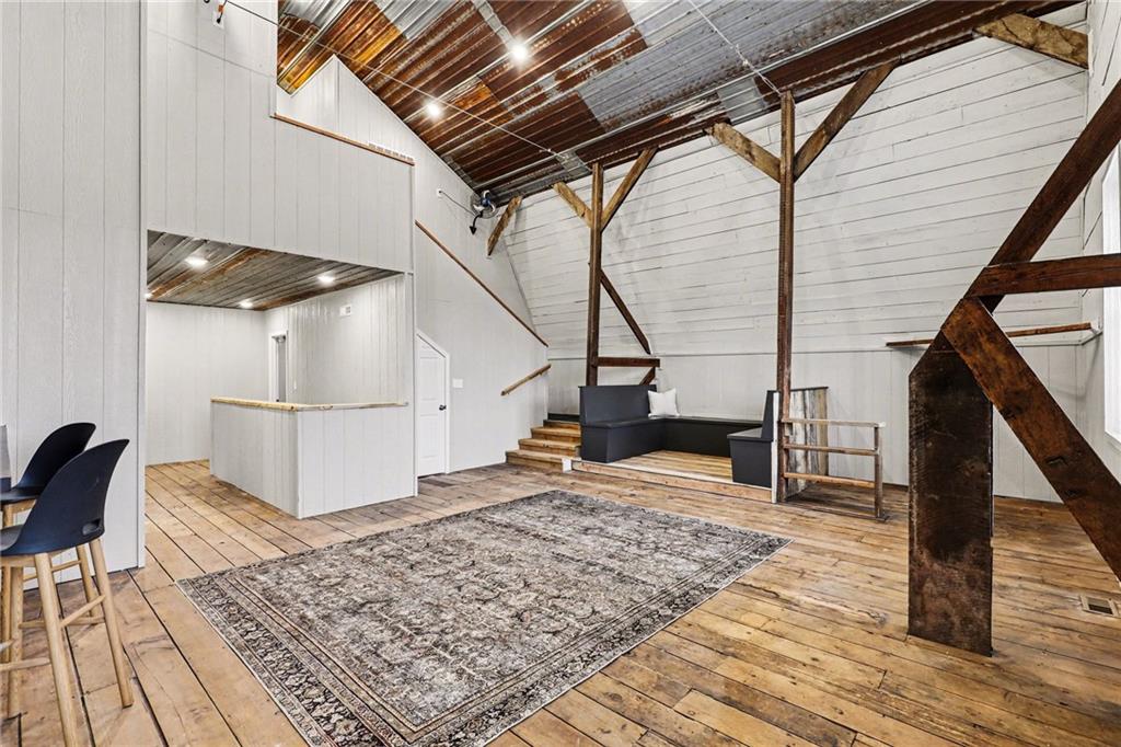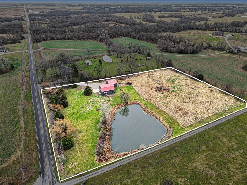 Experience the perfect marriage of turn-of-the-century character and cutting-edge luxury in this stunning 1900 barn conversion! Situated on 4.75 private acres, a half-hour from KC International airport, this three-story masterpiece has been meticulously reimagined into a sophisticated four-bedroom, five-bathroom retreat that defines "one of a kind." The main level anchors the home with a chef’s dream kitchen. Designed for both high-function and high-style with premium GE Café appliances and professional-grade finishes. With warm pine accents that nod to the structure's historic roots, an expansive layout flows effortlessly into the first of two distinct living areas. Ascend to the second floor to find a spectacular lofted great room. This massive secondary living space is the ultimate "game-day" destination, complete with a dedicated wet bar and a layout designed for large-scale entertaining or quiet relaxation. The primary suite is a masterclass in convenience and comfort, offering dual walk-in closets and integrated secondary washer/dryer hookups, ensuring laundry day is effortless. Spa-like finishes that create a true sanctuary. The beauty of the 4.75-acre lot is pulled indoors through thoughtful design, but the outdoor features are equally impressive. After a day exploring the grounds, use the outdoor shower to rinse off while overlooking the serene pond—perfect for keeping both owners and pets clean. A 42x30 outbuilding provides ample space for a workshop, studio, or equipment storage. This isn't just a home; it's a piece of history updated for the modern connoisseur with Smithville Lake, shopping and dining less than 20 minutes down the road. Schedule your private tour today to experience the scale and craftsmanship of this rural luxury estate!
