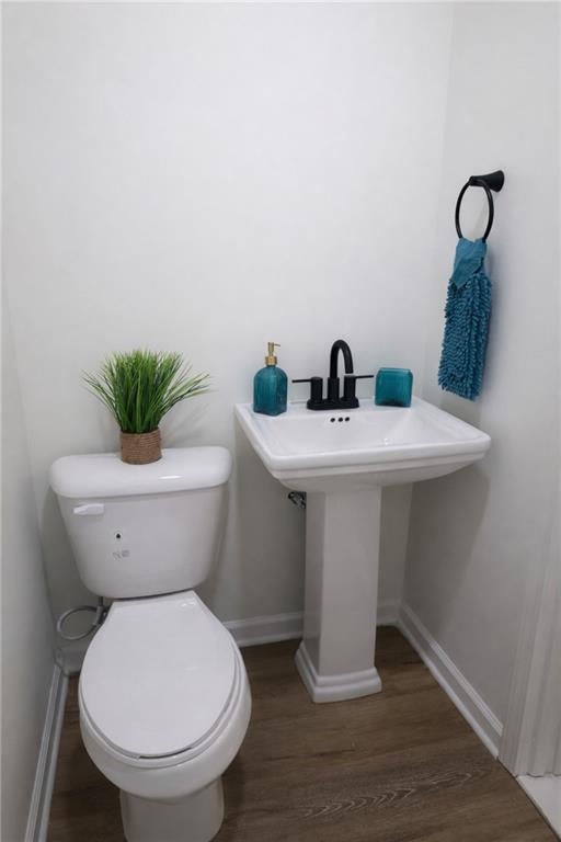 Half bathroom featuring dark wood finished floors