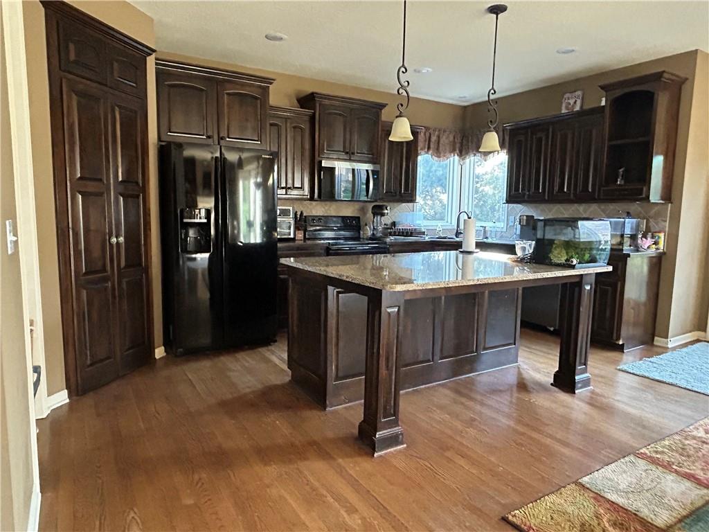 This former Forest View the Meadows model home sits on nearly half an acre and is the largest corner lot on a horseshoe-type cul-de-sac. The neighborhood pool (featuring a splash pad), playground, and pickleball/basketball/volleyball court is just a short 3-minute walk! The home features numerous model upgrades, including: a 4-car garage, built-in walnut bookshelves, a wine bar off the kitchen, a bonus sitting room, and natural stone accents on the front exterior. A beautiful new roof and gutters were added (2021), along with a new water heater (2025). The open concept kitchen has walnut cabinets, a large granite island, a spacious walk-in pantry, a brand new microwave, and a newer KitchenAid dishwasher. The family room boasts walnut built-ins and a tiled, classical gas fireplace. There are solid oak floors on the main level. The master bedroom features an additional sitting room, and the master bath has a relaxing jetted tub and a walk-in tiled shower with 2 shower heads. The patio has a tall gazebo shelter perfect for relaxing and grilling. Timeless details make this home unique. The price reflects the need for some updates. Make this solid home yours today!