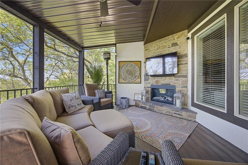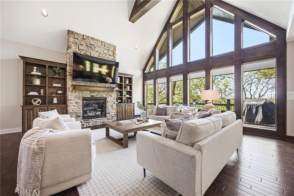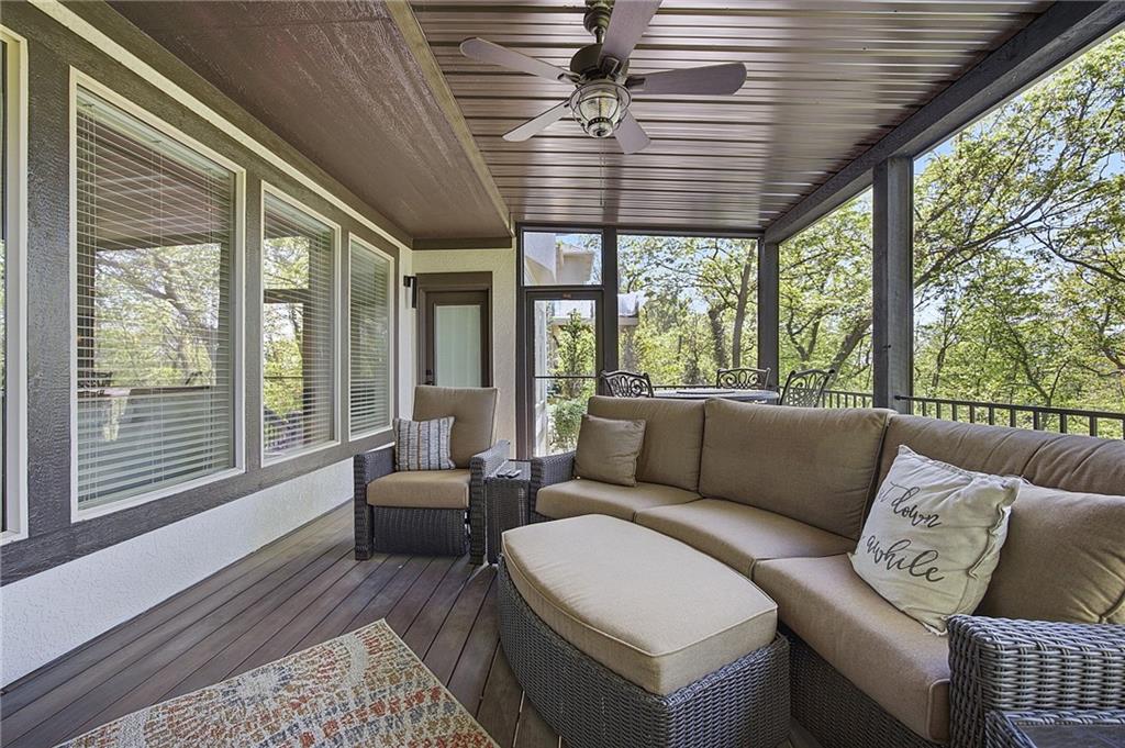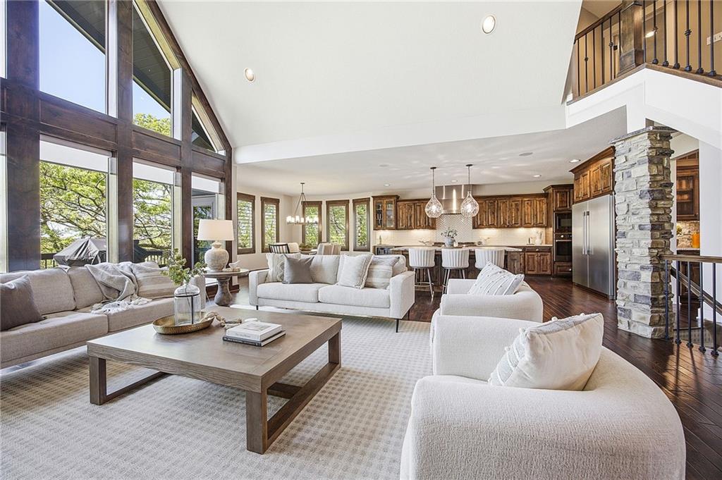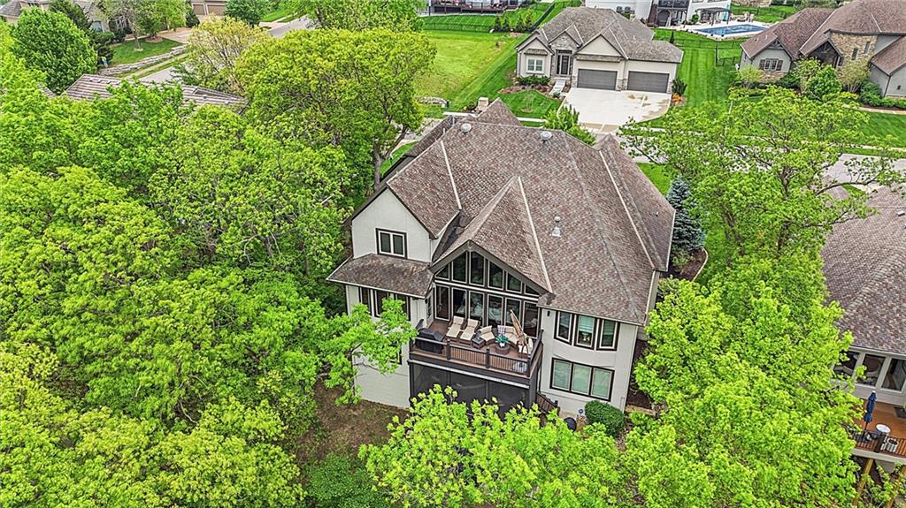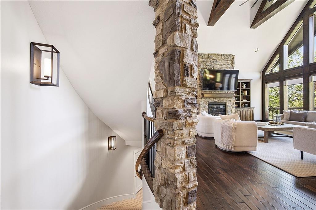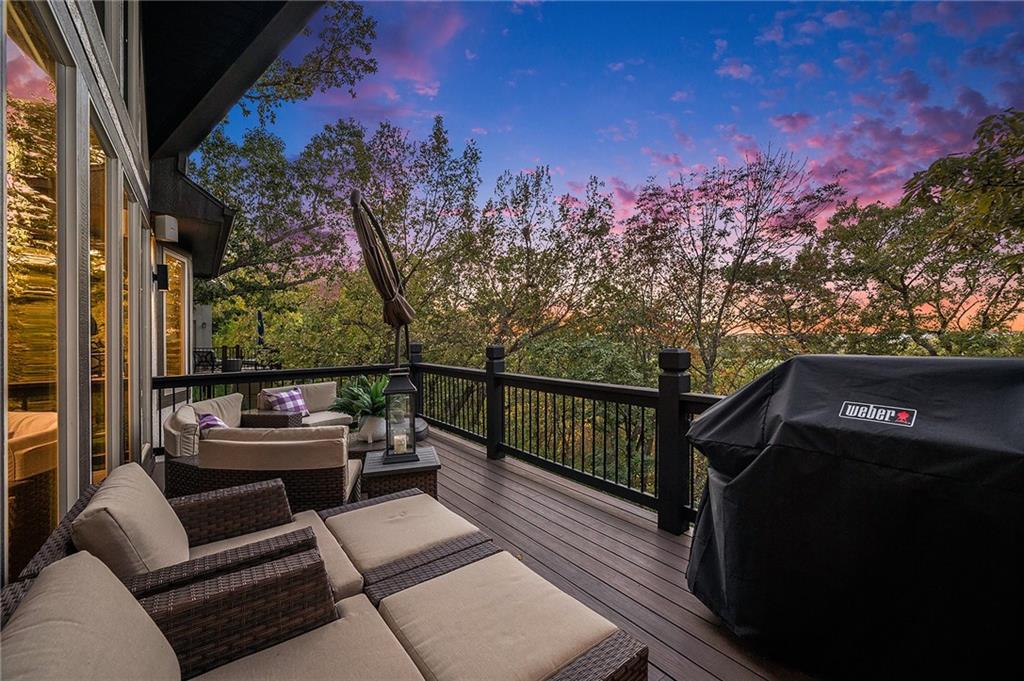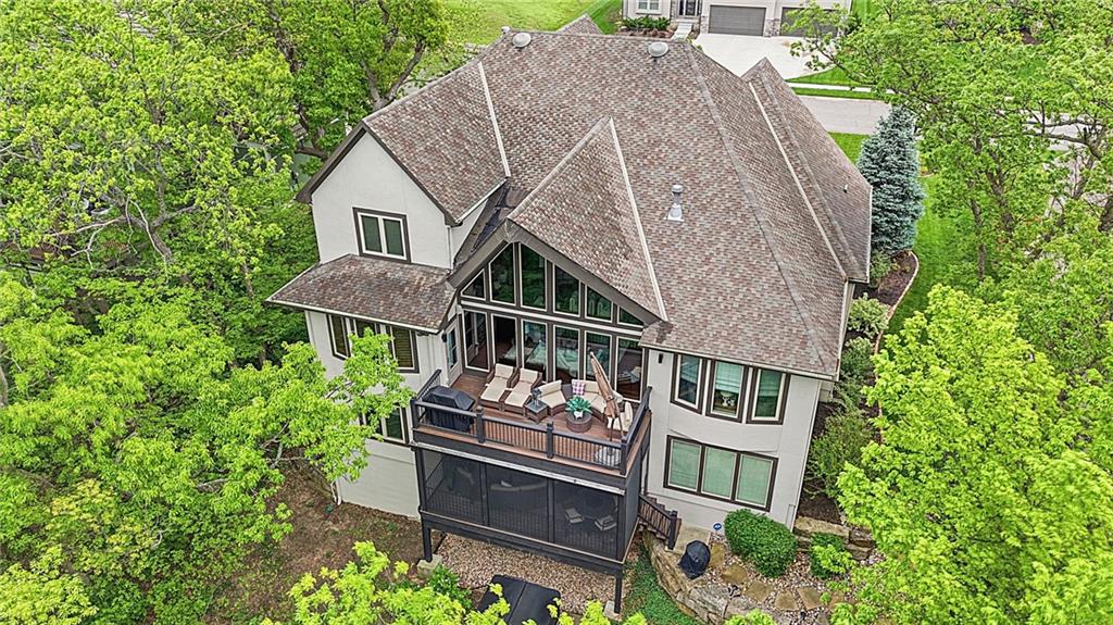 Stunning 1.5-story home with rare wooded, panoramic views. Main level features a curved staircase, office, stone fireplace with built-ins, a wall of windows for abundant natural light, and a dry bar with wine fridge. Open floor plan ideal for everyday living and entertaining. Main-level primary suite with recently updated bath: freestanding tub, heated floors, and backlit mirrors. Updated kitchen with beverage fridge, Frigidaire fridge/freezer, Bosch oven + microwave, ZLINE gas cooktop with electric ovens, Bosch dishwasher, and walk-in pantry. Upstairs includes a loft and 3 bedrooms. Finished lower level with rec room, bar, bedroom, and full bath. Outdoor living includes double decks, screened-in deck with fireplace, and private hot tub, all positioned to take in the wooded views. Sellers spared no expense, investing over $230K in updates, including $55K+ in landscaping/hardscaping. 3-car garage with epoxied floors. Meticulously maintained.