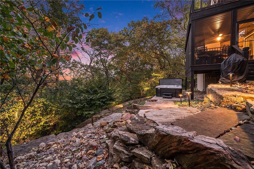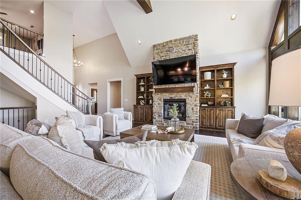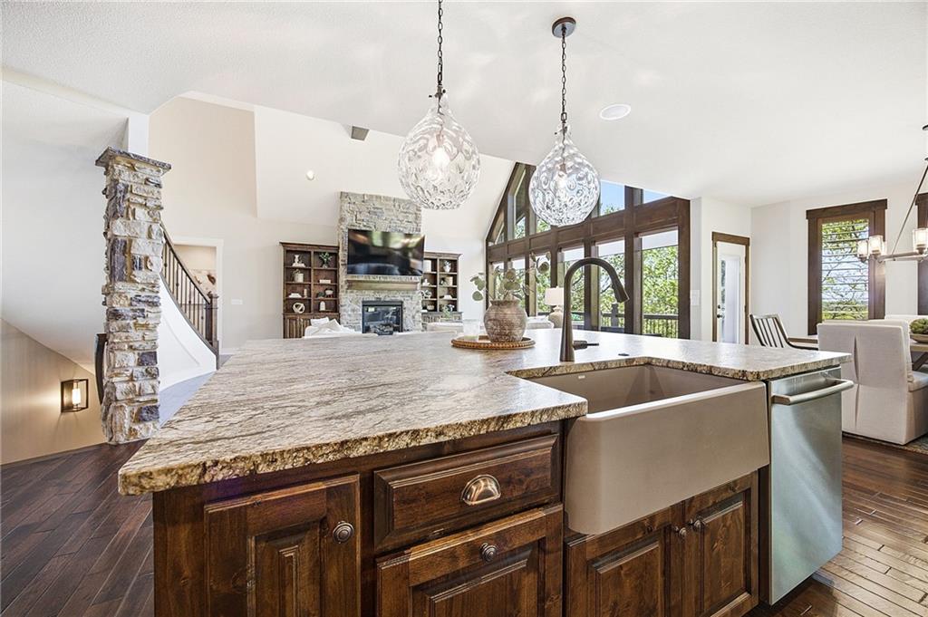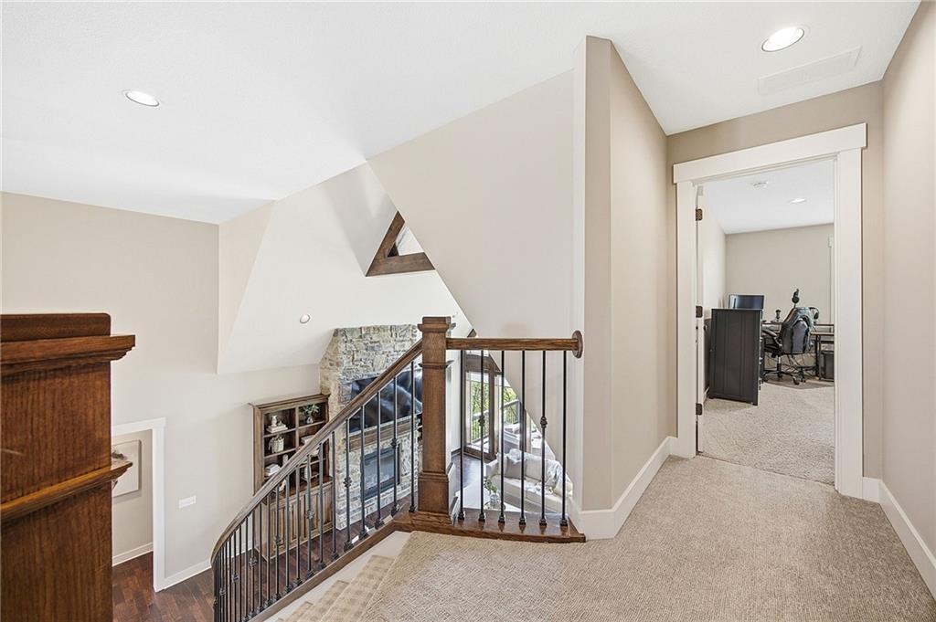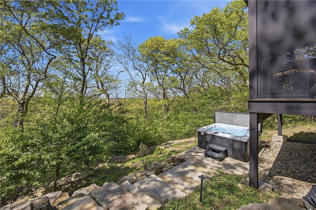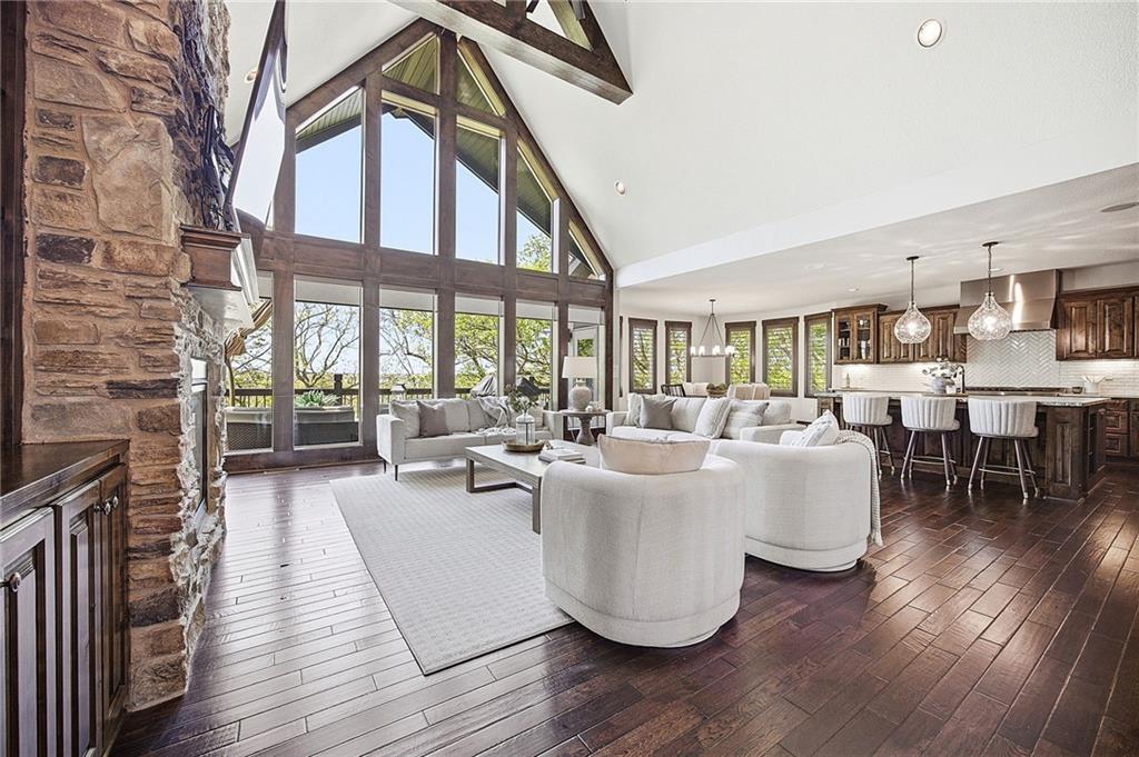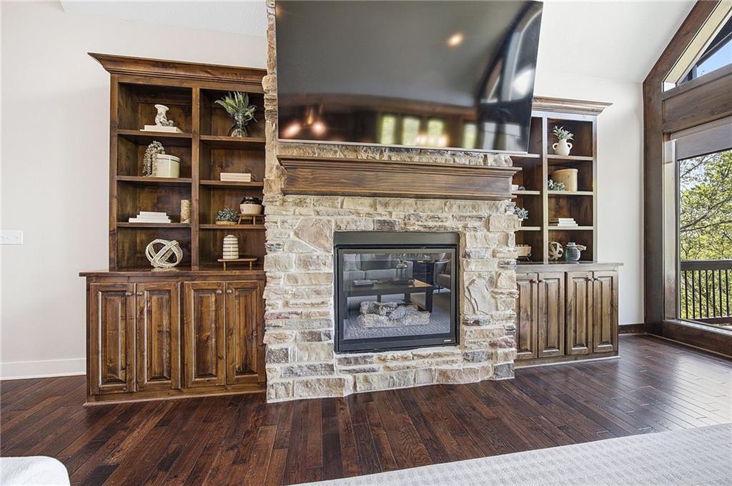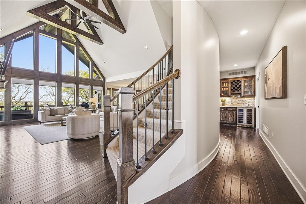 Stunning 1.5-story home with rare wooded, panoramic views. Main level features a curved staircase, office, stone fireplace with built-ins, a wall of windows for abundant natural light, and a dry bar with wine fridge. Open floor plan ideal for everyday living and entertaining. Main-level primary suite with recently updated bath: freestanding tub, heated floors, and backlit mirrors. Updated kitchen with beverage fridge, Frigidaire fridge/freezer, Bosch oven + microwave, ZLINE gas cooktop with electric ovens, Bosch dishwasher, and walk-in pantry. Upstairs includes a loft and 3 bedrooms. Finished lower level with rec room, bar, bedroom, and full bath. Outdoor living includes double decks, screened-in deck with fireplace, and private hot tub, all positioned to take in the wooded views. Sellers spared no expense, investing over $230K in updates, including $55K+ in landscaping/hardscaping. 3-car garage with epoxied floors. Meticulously maintained.