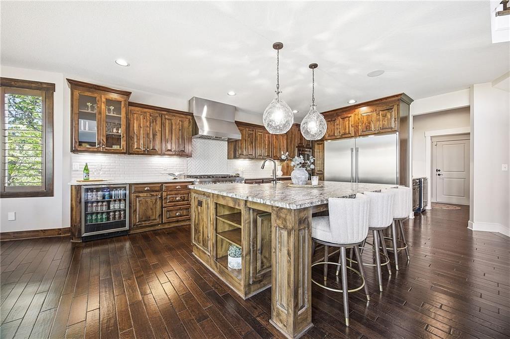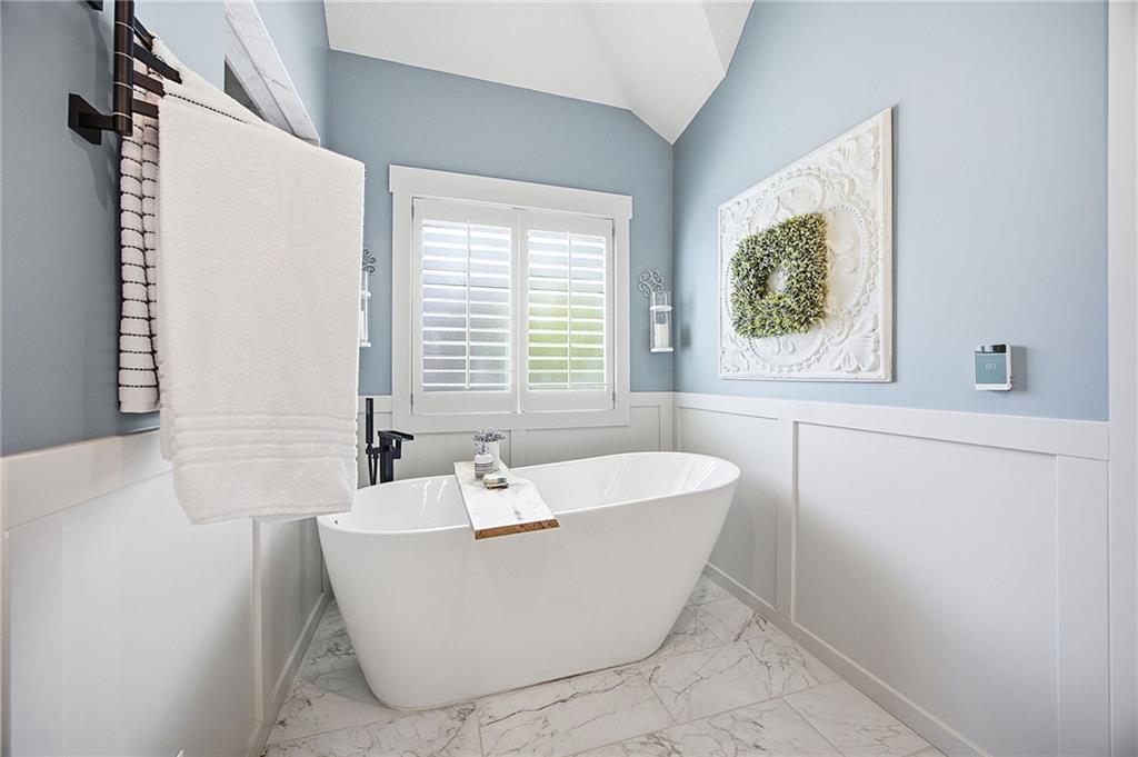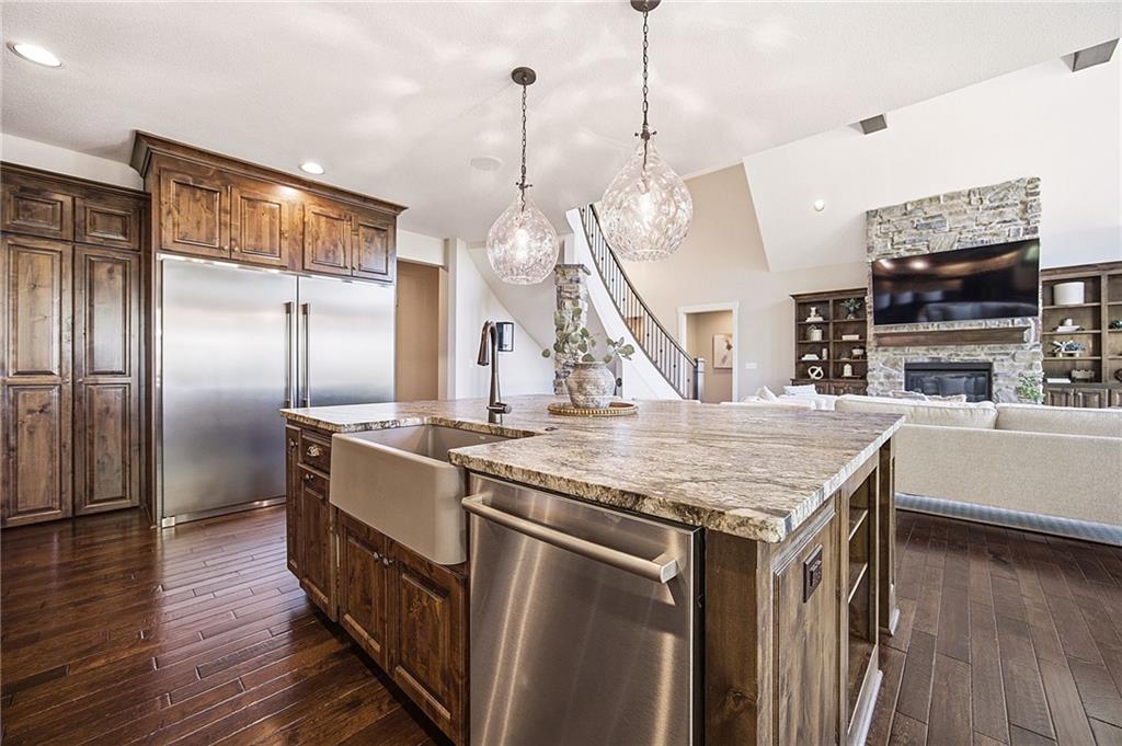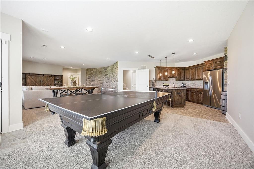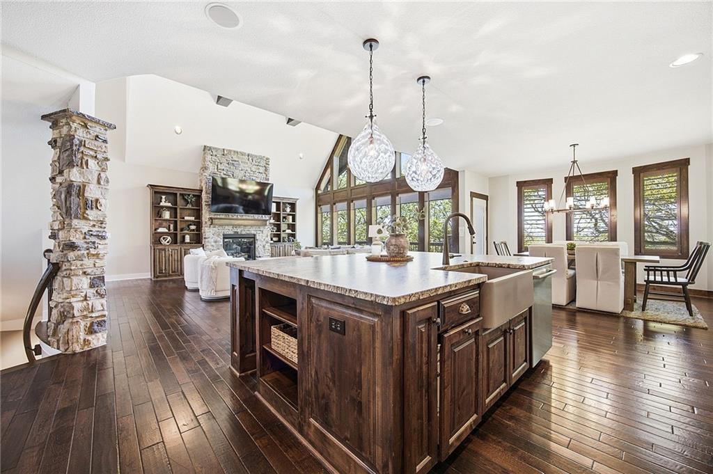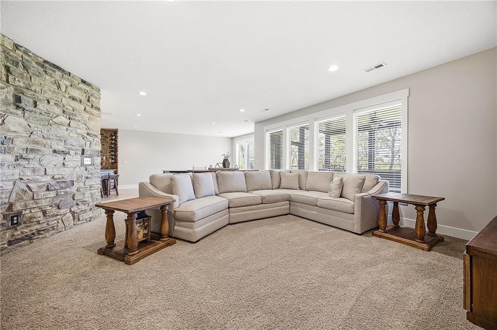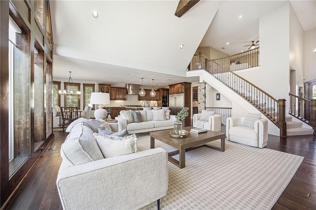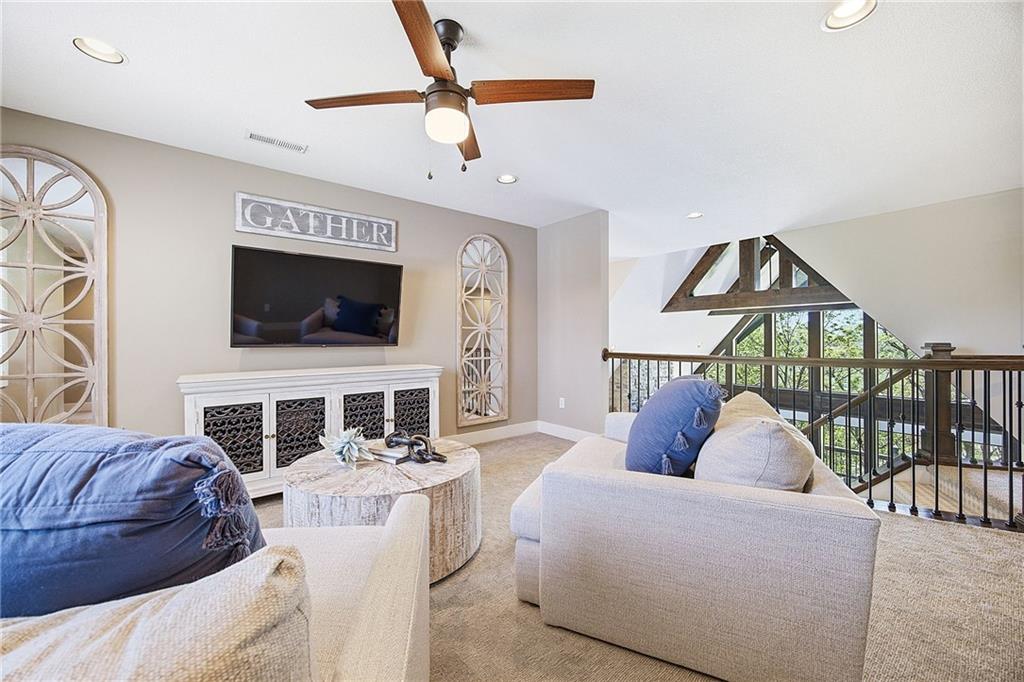 Stunning 1.5-story home with rare wooded, panoramic views. Main level features a curved staircase, office, stone fireplace with built-ins, a wall of windows for abundant natural light, and a dry bar with wine fridge. Open floor plan ideal for everyday living and entertaining. Main-level primary suite with recently updated bath: freestanding tub, heated floors, and backlit mirrors. Updated kitchen with beverage fridge, Frigidaire fridge/freezer, Bosch oven + microwave, ZLINE gas cooktop with electric ovens, Bosch dishwasher, and walk-in pantry. Upstairs includes a loft and 3 bedrooms. Finished lower level with rec room, bar, bedroom, and full bath. Outdoor living includes double decks, screened-in deck with fireplace, and private hot tub, all positioned to take in the wooded views. Sellers spared no expense, investing over $230K in updates, including $55K+ in landscaping/hardscaping. 3-car garage with epoxied floors. Meticulously maintained.