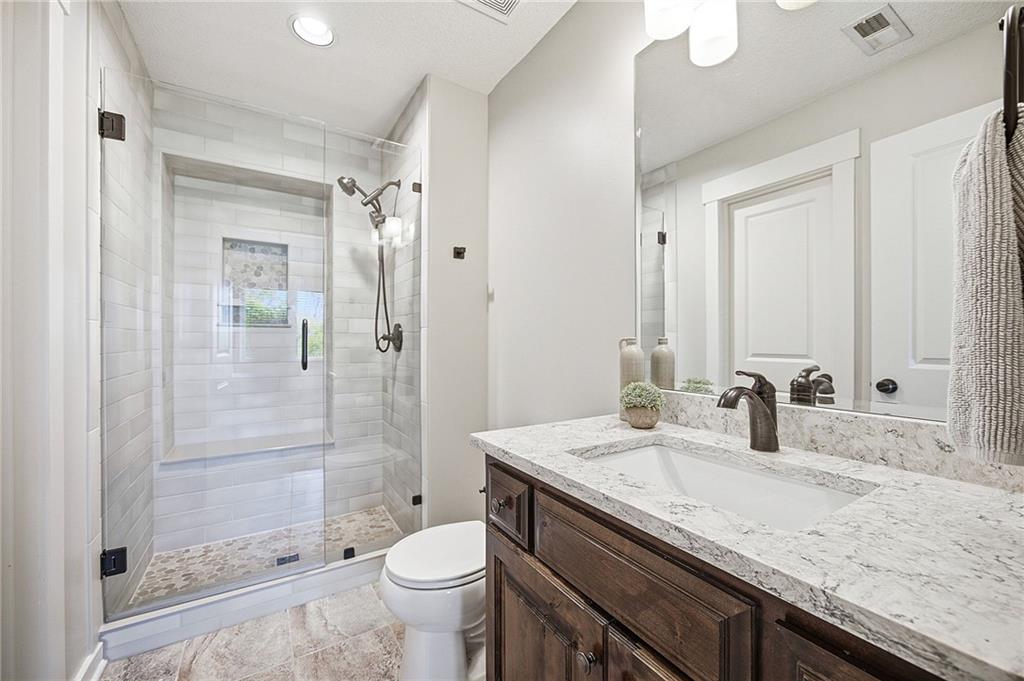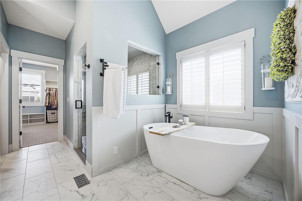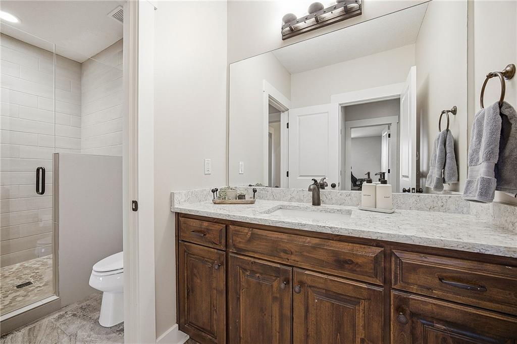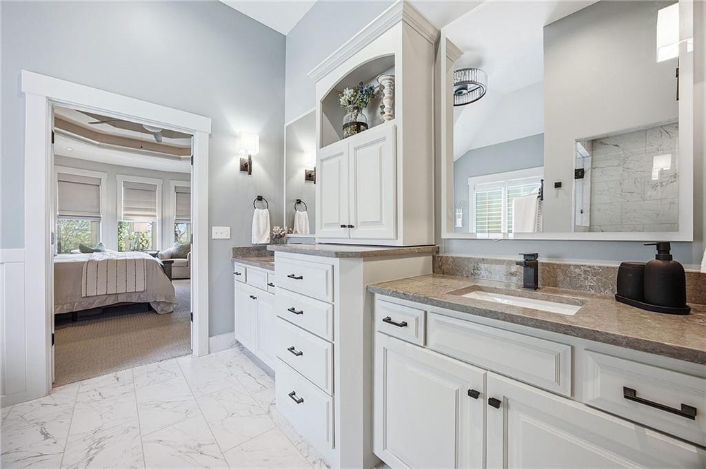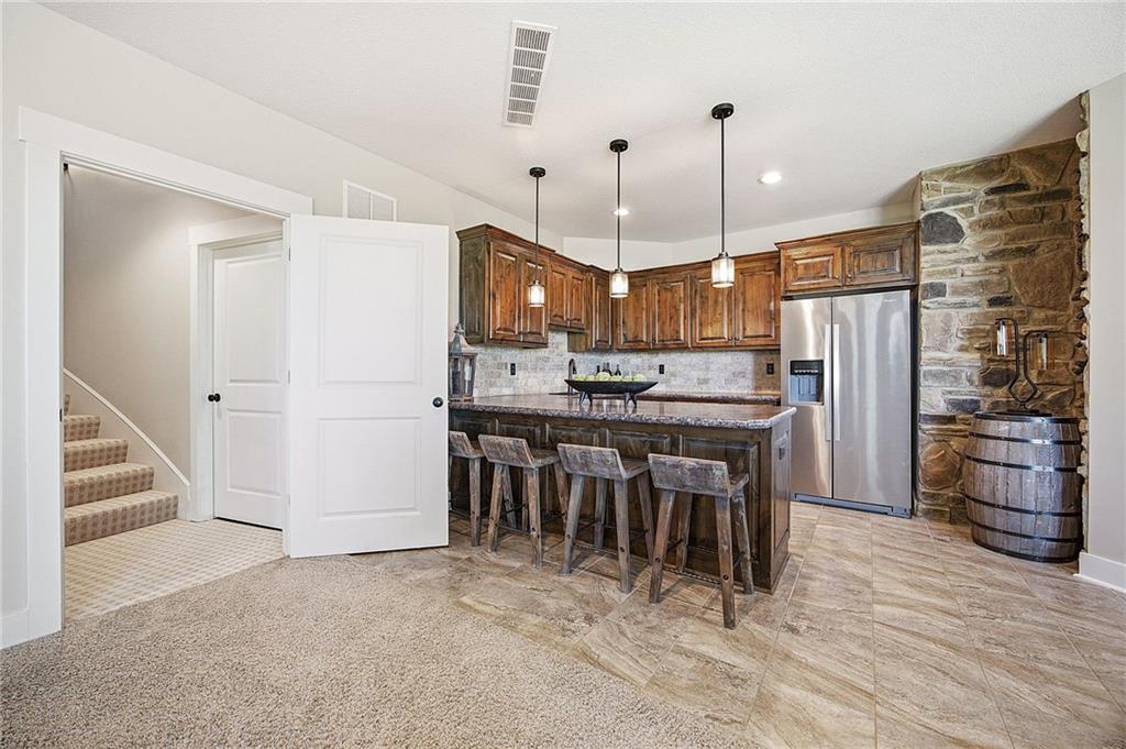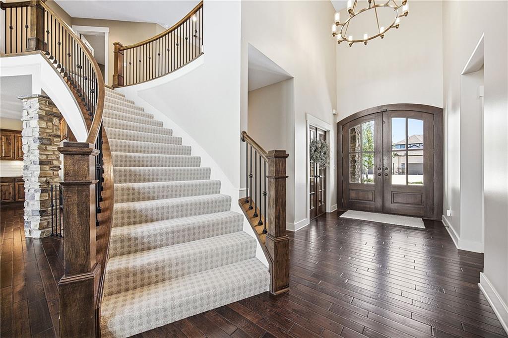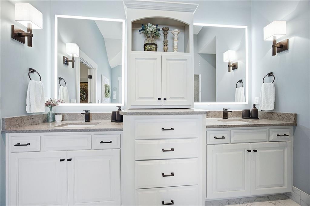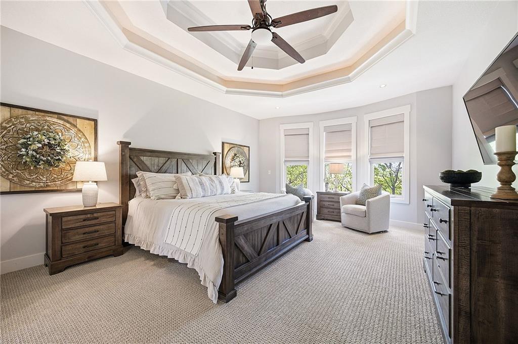 Stunning 1.5-story home with rare wooded, panoramic views. Main level features a curved staircase, office, stone fireplace with built-ins, a wall of windows for abundant natural light, and a dry bar with wine fridge. Open floor plan ideal for everyday living and entertaining. Main-level primary suite with recently updated bath: freestanding tub, heated floors, and backlit mirrors. Updated kitchen with beverage fridge, Frigidaire fridge/freezer, Bosch oven + microwave, ZLINE gas cooktop with electric ovens, Bosch dishwasher, and walk-in pantry. Upstairs includes a loft and 3 bedrooms. Finished lower level with rec room, bar, bedroom, and full bath. Outdoor living includes double decks, screened-in deck with fireplace, and private hot tub, all positioned to take in the wooded views. Sellers spared no expense, investing over $230K in updates, including $55K+ in landscaping/hardscaping. 3-car garage with epoxied floors. Meticulously maintained.