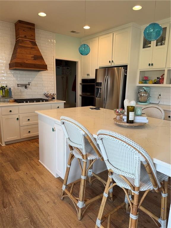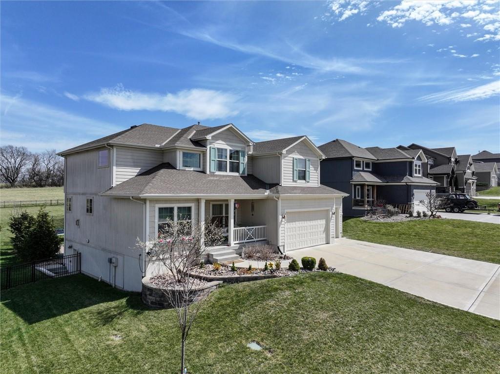 You will know you are home from the moment you pull up and see the gingerbread features on the front including shake shingles and a huge flower box and porch for sitting. Walk inside and you will be blown away by the open floor plan, gorgeous natural light and breathtaking view of the large lot and open field behind. The half acre lot features two large playgrounds, a trampoline, a large deck and patio and a huge garden for all your homesteading needs. Back inside this home on the main level you will find a cozy home office, bar and dining room and an expansive kitchen island sure to make any home cook or entertainer happy.
