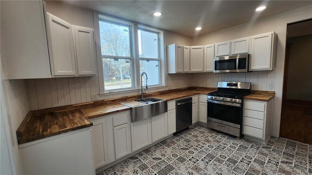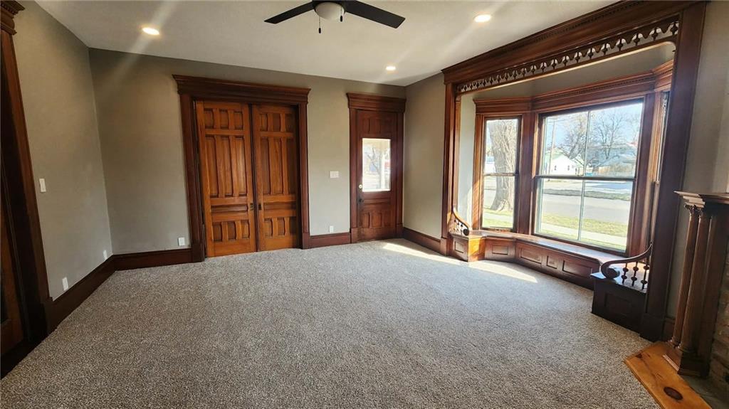 Step into everyday vacation living in this stunning turn-of-the-century retreat! Rich with character, the home features exquisite handcrafted woodwork, leaded windows, and beautiful original fireplaces that anchor the main living spaces. Thoughtfully preserved charm blends seamlessly with modern updates for comfort and efficiency. Enjoy flexible living and entertaining with spacious, connected rooms, a cozy reading porch, and a chef’s kitchen complete with butcher block countertops, stainless steel appliances, and stylish finishes. Upstairs offers generous bedrooms with updated features while maintaining original detail, along with spa-inspired bathrooms designed for relaxation. Located in Fort Scott’s historic district, this property offers endless possibilities—whether as a personal residence, Airbnb, or unique business space.