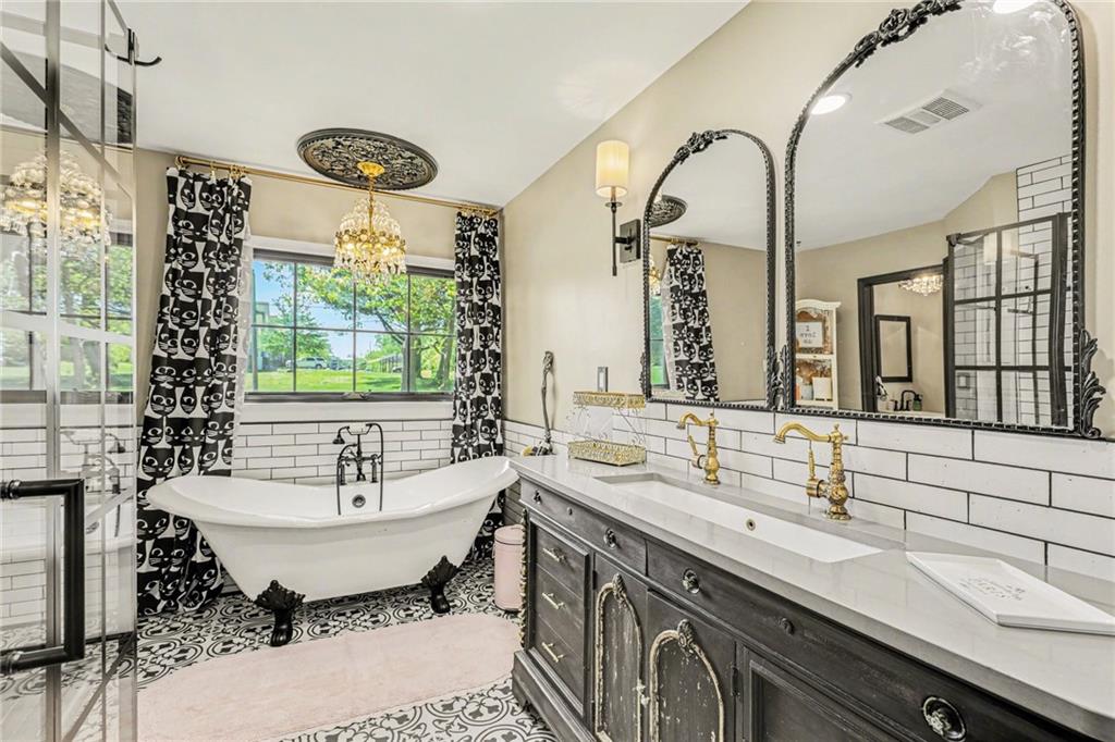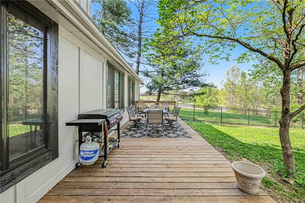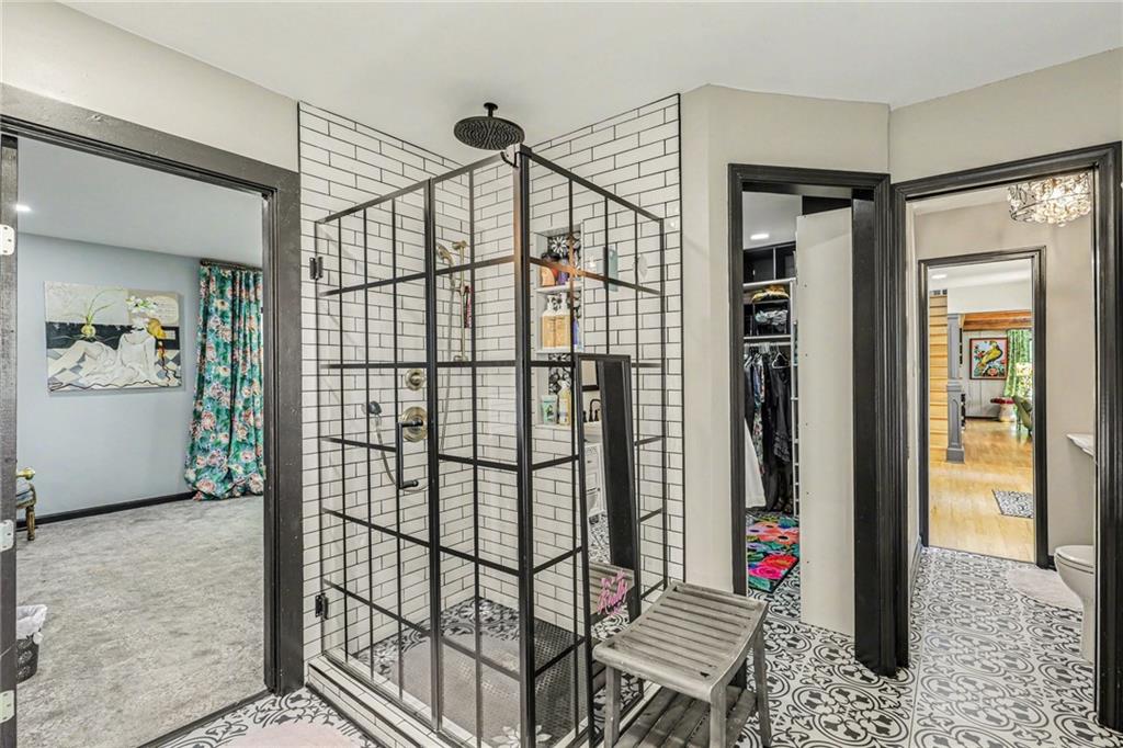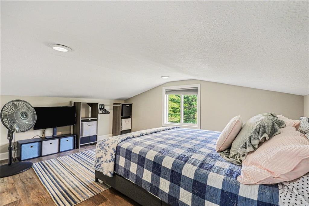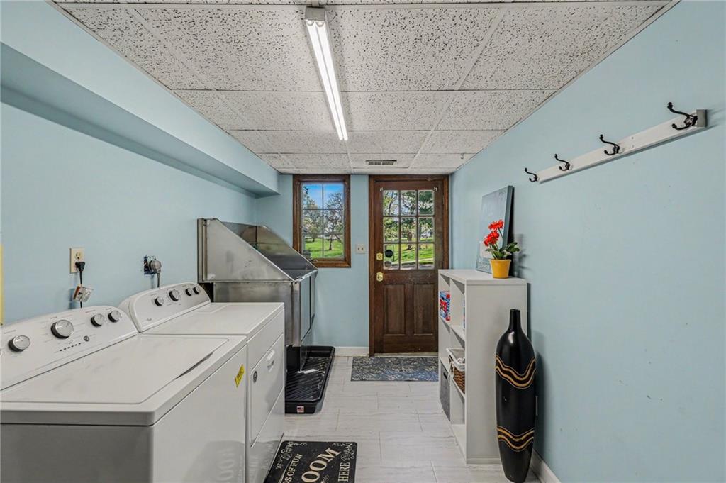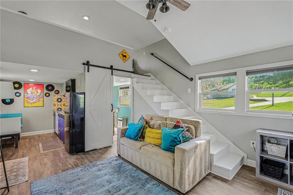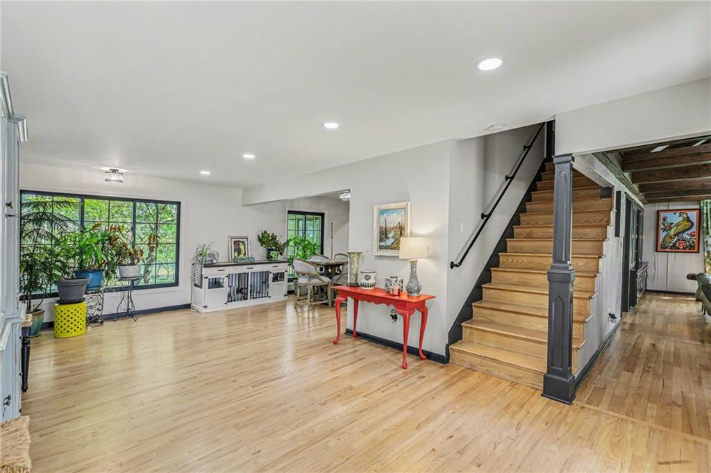A rare opportunity to enjoy tranquil acreage living within city limits, this beautifully maintained 1.5-story home sits on nearly 5 acres with a shared pond, offering peaceful water views and endless outdoor enjoyment. Featuring 3 bedrooms, 3 bathrooms, and a 4-car tandem garage, this property blends space, functionality, and lifestyle in one unique setting. Step inside to a warm and inviting main level highlighted by vaulted ceilings with exposed wood beams, rich hardwood floors, and a stunning stone fireplace with a gas starter in the living room. The kitchen is designed for both everyday living, featuring custom hickory cabinetry, an oversized island, and abundant storage with convenient pull out shelves. Just off the kitchen, the screened-in porch or the NEW deck both provide the perfect place to relax while overlooking the pond and expansive backyard. The main-level primary suite is a true retreat, positioned to capture beautiful sunrise views over the water with NEW windows. The updated en-suite bathroom features a double vanity with quartz countertops, a fully tiled walk-in shower, and an oversized clawfoot tub and laundry. Upstairs, you’ll find two spacious bedrooms, a full hall bath with updated tile and custom inserts for shower convenience, and an additional flex room ideal for a home office or extra storage.The lower level offers additional storage, full bath, pet spa, mudroom, second laundry, access to the garage and workshop areas. Outdoor living is just as impressive, with open acreage, fruit trees, garden beds, and multiple storage sheds. The shared pond adds to the charm, perfect for fishing. Enjoy the partial NEW fence in the yard perfect for pets. Adding exceptional value, the accessory dwelling unit offers a fully functional space ideal for guests, extended family, or rental income potential. With its combination of scenic views, flexible living spaces, and income opportunity, this property offers comfort, privacy, and convenience all in one.