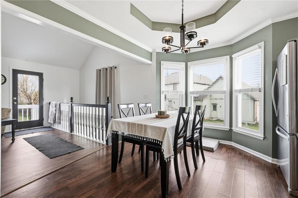 Welcome home to this beautifully maintained raised ranch in Raymore! From the moment you arrive, you’ll be charmed by the inviting covered front porch and standout curb appeal. Inside, this 3-bedroom, 2.5-bath home offers a seamless flow from the entry into the kitchen and spacious great room, complete with a cozy fireplace—perfect for both everyday living and entertaining. Stylish touches like wainscoting along the hallway add character, while the expansive layout continues with a unique loft space above the master featuring hardwood floors—ideal for a home office, reading nook, or flex space. Step outside and fall in love with your private backyard retreat! The full-length deck spans the entire back of the home and includes direct access from the primary suite—perfect for morning coffee or unwinding in the evening. The patio leads to a stunning 3-year-old in-ground pool, creating the ultimate setup for summer entertaining. All of this sits on a large, fenced lot offering both space and privacy. This home truly has it all—style, function, and an outdoor oasis you won’t want to miss!