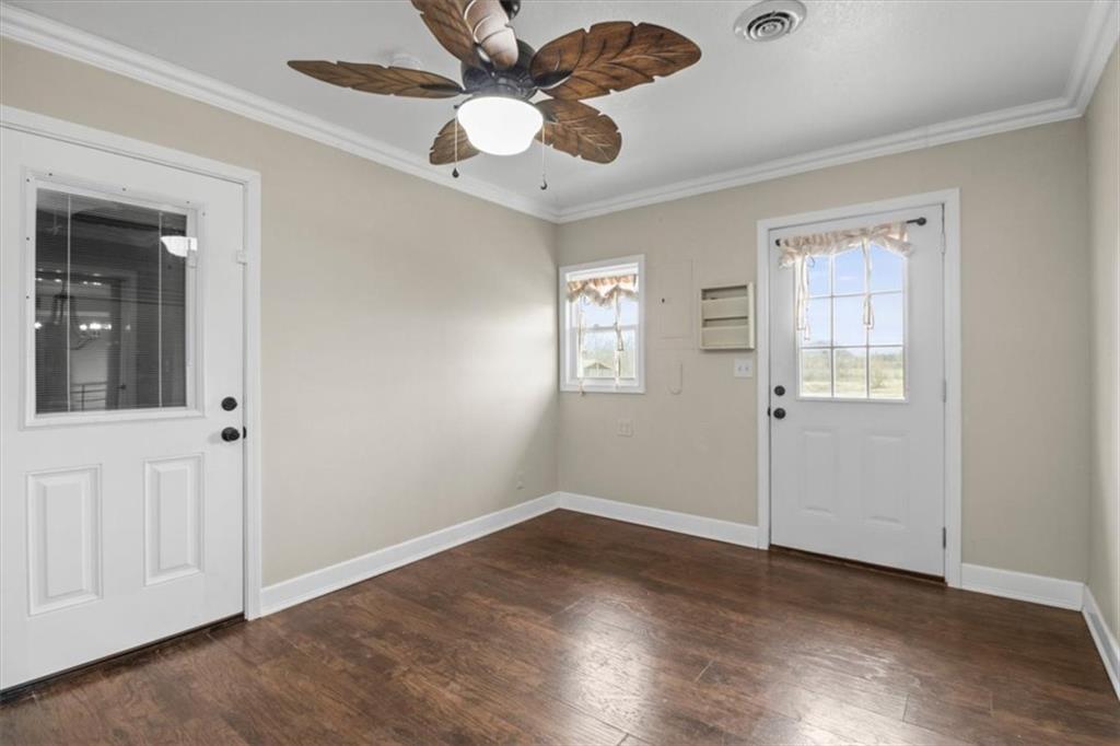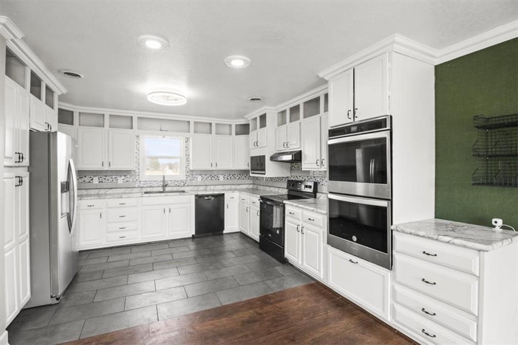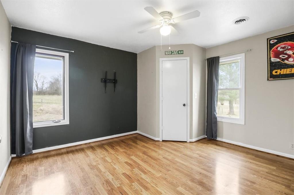Set on 24 beautiful acres, with private drive and gated entry, this property is ready for your livestock and your lifestyle. This gorgeous home is out of city, unincorporated Oak Grove offering low property taxes under $3300/year. Fully fenced and cross-fenced, the land is thoughtfully divided into five separate pastures making it perfect for rotating cattle or horses. A newer 30x40 shop features a concrete floor, 200-amp service, and an exhaust fan, while a second barn offers wood flooring, electricity, and a loft for additional storage. You’ll also find two loafing sheds with stalls, along with two stocked ponds ready for your enjoyment! This home is positioned perfectly in the center of the acreage, offering 4 bedrooms, 2 bathrooms, along with an office/mudroom with peaceful views and stunning sunsets. You'll love the beautiful flooring throughout with a unique sunken living room surrounded by newly updated handrails with rod irons. All rooms are spacious with walk-in closets in every bedroom. Major updates have already been taken care of, including a new deck and extended patio, fully renovated bathrooms, new light fixtures, updated kitchen with new countertops, backsplash, sink, faucet, painted cabinetry, and double ovens. Additional improvements include fresh interior and exterior paint, eight newer windows, updated flooring, and upgraded trim with 6” baseboards in most of the home. New septic system less than a year old, the roof, furnace, and A/C are all 8 years old. This is a rare opportunity to own a turn-key acreage home out of city, off black top with the space, setup, and updates already in place.