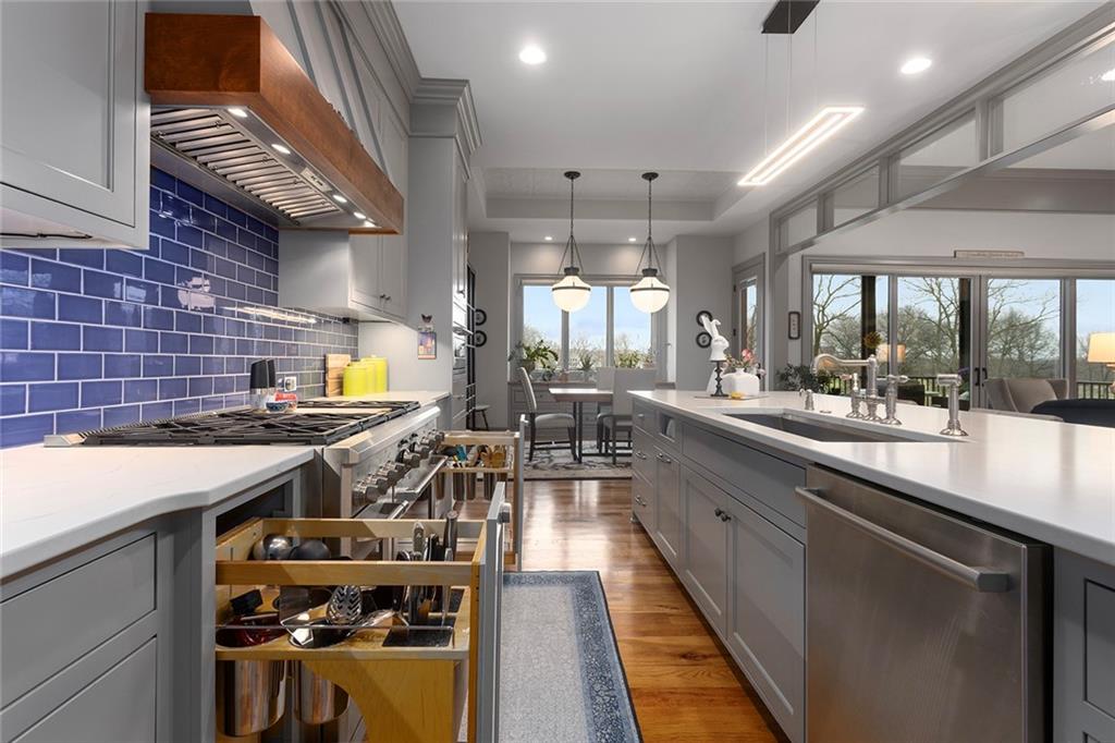 One-of-a-kind modified Haventon floorplan built by Homes by Chris in the remarkable Tiffany Greens subdivision, featuring all of the custom upgrades you could imagine! Classy and convenient, this recently-built home was thoughtfully appointed with top-quality materials and a meticulous eye for details that prove both beautiful and useful. Step into the expansive open-concept living/kitchen combo and enjoy gorgeous views of the Tiffany Greens golf course, or stare in awe at the stunning Italian plaster fireplace and upgraded trim package, complete with a striking seeded glass transom. The 12-foot kitchen island with quartz countertop is the heart of the home, a perfect place to congregate for after school snacks or elevated evening hors d'oeuvres. Homeowners who enjoy entertaining will gush over the luxury kitchen appliances including a 42" range, large workstation sink, sub zero refrigerator, and three ovens! Inset kitchen cabinets with soft close doors and storage upgrades plus a generous butler's pantry are a home cook's dream come true. The spacious primary bedroom features a bathroom with custom cabinets and heated tile floors with a massive walk-in closet. Casement windows, natural hickory floors, 8-foot solid wood doors, automatic window treatments, direct hardwire for internet, and too many other upgrades and special touches to name. If you have ever wanted to build a custom home but the process feels intimidating, this is the house for you! Enjoy all of the features of an intentionally designed home with none of the decision fatigue. An opportunity you don't want to miss!