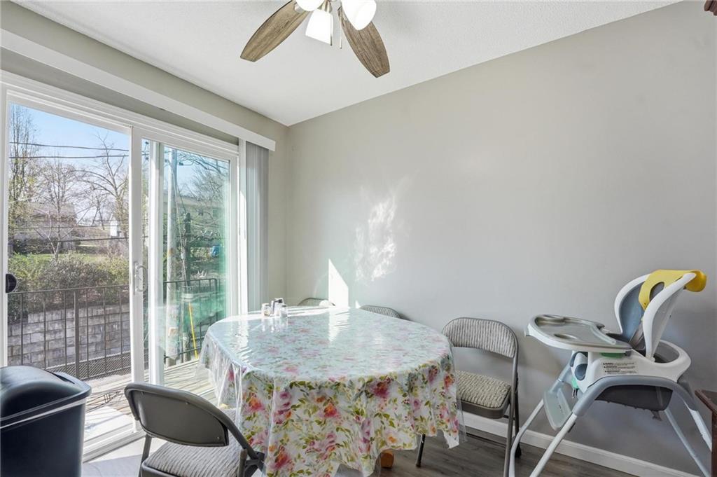 Move-in ready half duplex offering comfortable living with thoughtful updates throughout. The bright kitchen features white painted cabinetry, ample workspace, and an eat-in dining area that opens directly to the deck, creating a great space for morning coffee, outdoor dining, or relaxing evenings. Fresh, updated paint and painted white trim throughout give the home a clean, modern feel. Stylish barn doors add character and a touch of farmhouse charm while maximizing space and functionality. Step outside to enjoy the fenced backyard featuring both a patio and a deck, providing multiple areas for entertaining, grilling, or simply unwinding outdoors. With its move-in ready condition, inviting updates, and great indoor-outdoor living spaces, this home offers both comfort and convenience.