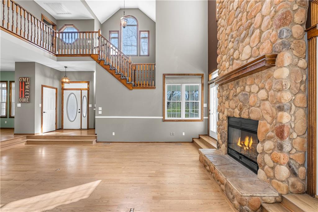 Stunner of a home on nearly 10 acres! Greenwood address with Lone Jack Schools giving you the best of two charming small towns!!! Excellent highway access for easy commutes, yet peacefully tucked away from the hustle and bustle. Close to schools. Enjoy sunrises and sunsets from the massive wrap around porch and sun filled afternoons on the giant deck or relax on the paver patio! Paved driveway leads you to the generously sized outbuilding with concrete floors perfect for storing all the tools, collector cars or utvs, whatever makes you happy; plus a loft for even more storage or workspace. 3 stall horse stable, livestock fencing and that is just the exterior! Inside you will find a custom floor plan with a cool and cozy sunken living room with fireplace. Primary suite with its own exit to the outdoor living space and large primary bathroom. Formal dining, and a breakfast nook. Beautiful kitchen. Soaring ceilings. Two more bedrooms upstairs with a jack and jill bathroom! And a finished walk out basement ready for all the holiday parties and the day to day farm life. One more bedroom in the basement plus rec room, bar and pool table that stays. There is so much more to offer with this rare find of a home! Come see why once it is yours you will never want to leave but when you do, you will love how conveniently situated it is!! Minutes from Lone Jack, Lee’s Summit, Pleasant Hill, Greenwood and easy commute to the military base, UCM, OPKS and even downtown. Fall in love with easy country living and still enjoy modern conveniences!