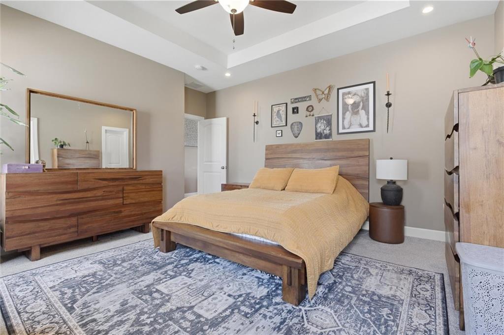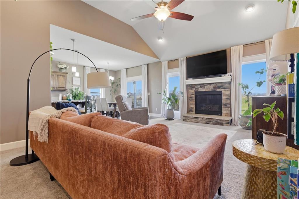 Enjoy golf course living in this well-maintained ranch home backing to the 18th hole at Hidden Valley Golf Course in Lawson! Built in 2018, this 3-bedroom, 2-bathroom home offers true main-level living with an open and airy layout with tall ceilings in the living room. The spacious primary bedroom features a private bathroom and walk-in closet. Walk out to the back deck that steps down to the large patio—perfect for relaxing or entertaining while taking in the beautiful views of the golf course. Deep backyard and very well cared for landscaping beds. Concrete storm/safe room in garage. Located in the desirable Lawson School District with quick access to Hwy 69, this home offers a great blend of comfort, convenience, and scenery.