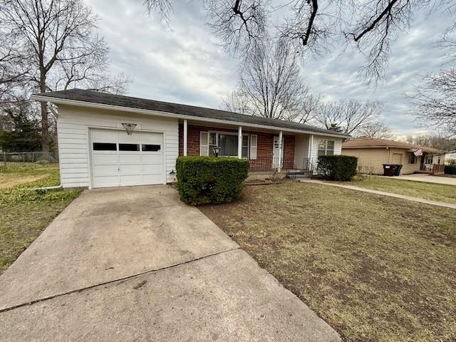 Standing proud just 2 blocks from the University of Kansas this true ranch home on a basement promises all kinds of potential and opportunity. The current finishes representing that of a bygone era, consider removing the carpet to let the original hardwoods shine and make the necessary repairs to restore her to her former glory. The main level is comprised of a very large living room, dedicated dining space, 2 nice-sized bedrooms and a classic kitchen overlooking a great backyard with circular back corner patio. The full unfinished basement great for storage and recreation comes with built-in work bench. There are repairs needed to this home and it is priced accordingly. Bring your vision and tools to make it happen! This home has been loved and appreciated for decades by its most recent owner and is ready for the next steward to make it theirs. Home sold in present, as-is condition. Cash or construction loan.