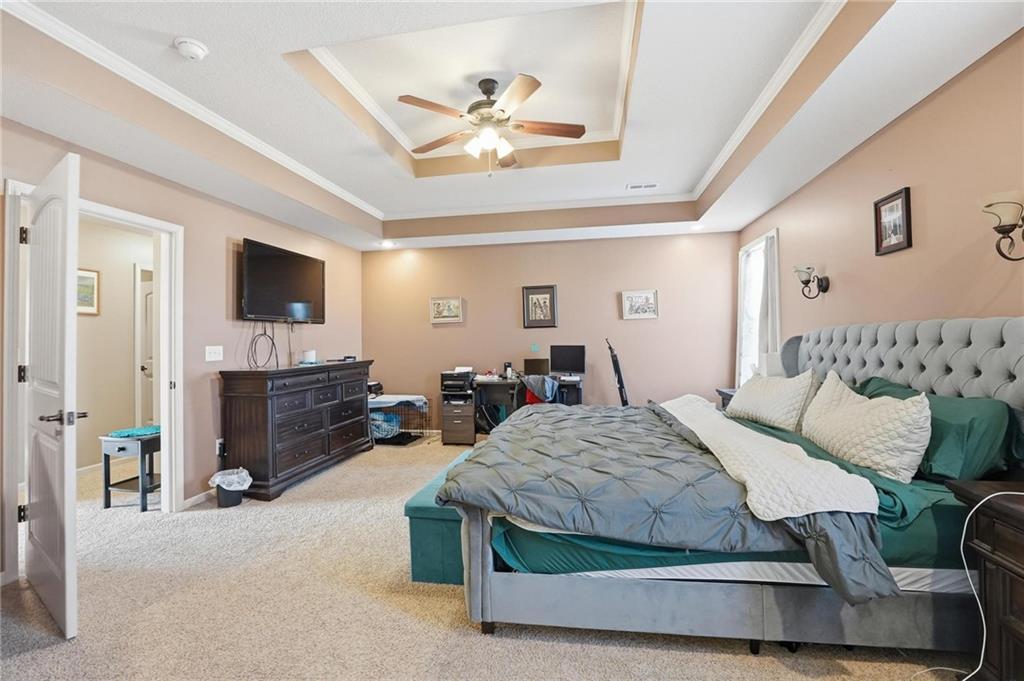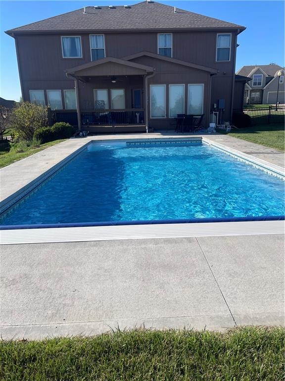 This beautifully designed two-story home features a spacious open floor plan that blends comfort, functionality, and style. The main level welcomes you with a large living room that flows seamlessly into the kitchen, creating an ideal space for everyday living and entertaining. The kitchen is equipped with custom cabinetry, functional island, and a large walk-in pantry for added storage and convenience. Adjacent to the kitchen are both a formal dining room and a cozy breakfast nook, offering flexible dining options. A convenient half bath completes the main floor. Upstairs, the home offers four generously sized bedrooms and three full bathrooms, providing plenty of space for everyone! The upper level also includes a dedicated laundry room for added ease and practicality. The finished basement expands the living space with a large recreation room perfect for gatherings, games, or movie nights. It also includes a non-conforming fifth bedroom that could easily serve as a home office, workout room, or guest space. Outside, the property features an in-ground pool and a fully fenced backyard, creating a private setting ideal for relaxation and outdoor entertaining. A three-car garage provides ample parking and storage. This home offers the perfect combination of spacious living areas, thoughtful design, and excellent amenities both inside and out.