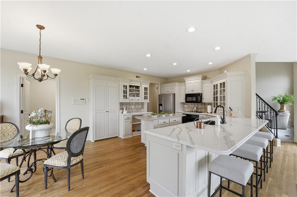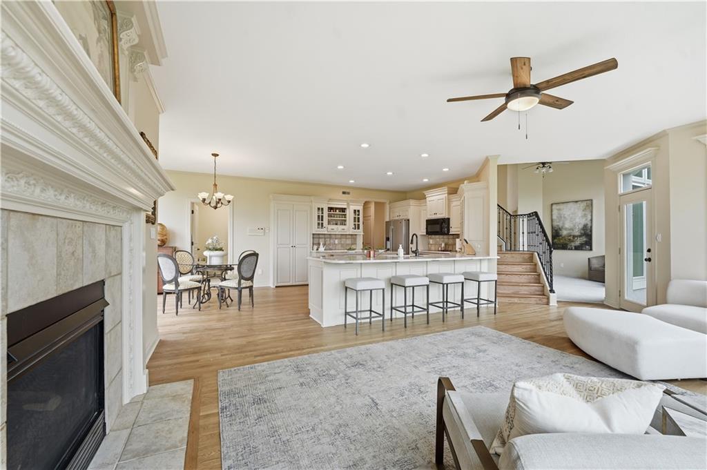 Spacious one-level living in the highly sought-after Tiffany Greens community in Kansas City, MO, offering exceptional views and an ideal layout for both everyday living and entertaining. This light-filled home features soaring ceilings, expansive picture windows, and elegant formal sitting and dining areas, along with a generous great room perfect for gatherings. The chef’s kitchen is designed to impress with abundant cabinetry, a walk-in pantry, large island, cooktop, built-in oven, and stunning countertops. The main-level primary suite provides peaceful views and a well-designed walk-in closet with custom built-ins. Upstairs, you’ll find spacious bedrooms with ample closets and private baths, ideal for family or guests. The finished walk-out lower level adds valuable living space, including a private fifth bedroom, full bath, family room with wet bar, and a large recreation area perfect for a pool table, ping pong, or shuffleboard. Outdoor living is just as inviting with a covered patio, flat usable yard, and a composite deck overlooking the space. Conveniently located near shopping, dining, and major highways, this home offers easy access to all that Kansas City has to offer while enjoying the amenities of Tiffany Greens golf course living. Tiffany Greens is an 18 hole golf course with full service clubhouse, golf simulators, leagues and events!