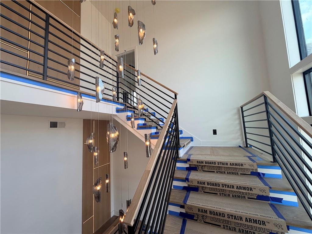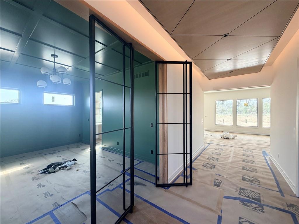 Welcome to Lot 47 The Ackley by Sycamore Road Homes! Exceptional 1.5 Story on a ¾ +/- acre estate lot with a huge flat backyard ideal for a future pool, outdoor oasis, or play area. This home features a 4-car garage with pedestrian door to the backyard and a dramatic 3-story open stairwell with a stunning floor-to-ceiling picture window. Striking black windows, intricate woodwork with accent lighting, and engineered hardwoods on the main floor add custom style throughout. The spacious main level includes a large study/flex room, mud room, and an open Great Room, Kitchen, and Dining area with tall ceilings. The kitchen is appointed with a large island, high-end appliances, 48" refrigerator/freezer, gas cooktop, butler’s pantry, and walk-in pantry. The main-level primary suite offers dual vanities, a freestanding tub, large walk-in shower with designer glass surround, and laundry access connected to both the hall and primary closet. Upstairs features a huge loft, 3 large bedrooms with walk-in closets, including one en-suite, plus a Hollywood-style shared bath. Lower level is stubbed for a full bath and offers room for a 5th bedroom, workout space, and large family room. Built with 2x6 exterior walls, upgraded Spider insulation, and 400-amp service for future pool potential.