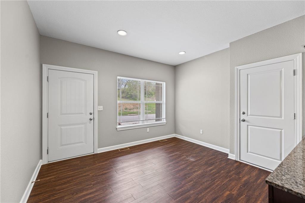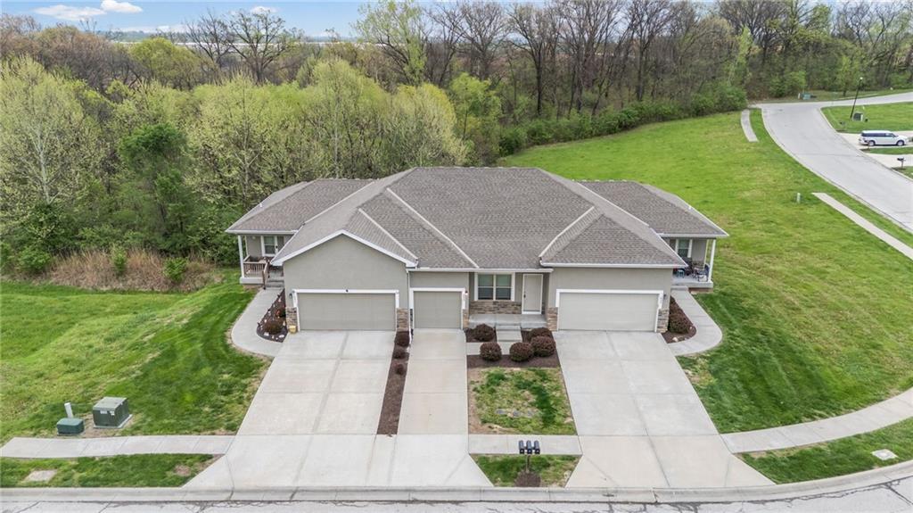Rarely available 2-bedroom, 2.5-bath townhome in Villas of Stonebridge! This spacious, move-in-ready home offers the perfect blend of privacy, style, and true low-maintenance living. Inside, you’ll find granite countertops, stainless steel appliances, and large, bright windows that fill the home with natural light. The property has been well maintained and features brand new carpet and fresh paint throughout, ready for you to move right in! Step outside to your patio backing to greenspace and a wooded area, creating a peaceful setting ideal for morning coffee or evening relaxation. The HOA covers lawn care, landscaping, snow removal, exterior maintenance, and more, allowing for easy, worry-free living. Conveniently located with quick highway access and just minutes from The Legends, Kansas Speedway, and the future home of the Chiefs Stadium! Schedule your private showing today! (Investment opportunity available with the two neighboring units also for sale. Please reach out for additional details on a package purchase if interested)