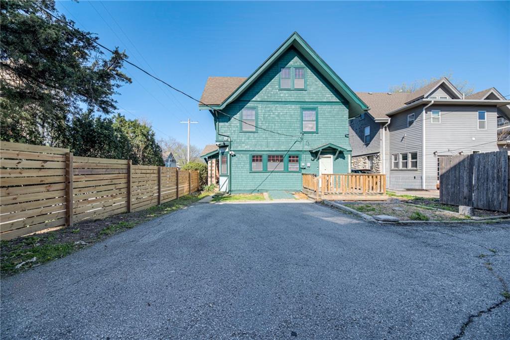 Hello Historic Hyde Park Home! There is so much to love! Old world charm and character with the size and updates to match. This historic three-story craftsman/Tudor home has been loved and cared for while being thoughtfully remodeled. Sit on the swing and enjoy the covered wrap around front porch of this 1909 brick front beauty. Oversized living space with formal dining area and ample room for all your get togethers. The kitchen is the soul of any house and this one shines, with gorgeous wood cabinets, large windows, custom glass doors, stainless steel appliances and granite countertops to bring everything together! Brand new hardwood floors throughout the first and second floor as well as a newly painted interior. The third floor is its own personal oasis with an abundance of natural light to illuminate all of your plant babies in the corridor with two large rooms that would be perfect for an office and bedroom. Exterior work has been done including siding repairs, new downspouts, landscaping, and a partial privacy fence with a large double gate that opens to private parking. Minutes away from all of Kansas City's coolest highlights of the Nelson Atkins Art Museum. A/C-2026, Furnace-2026, Water Tank-2026.