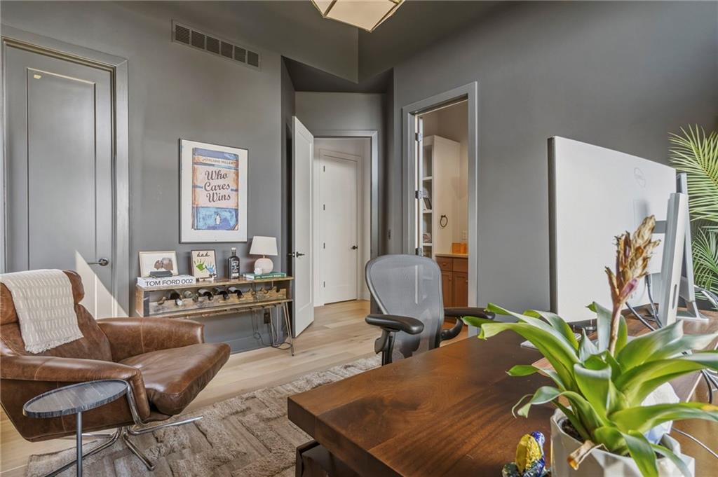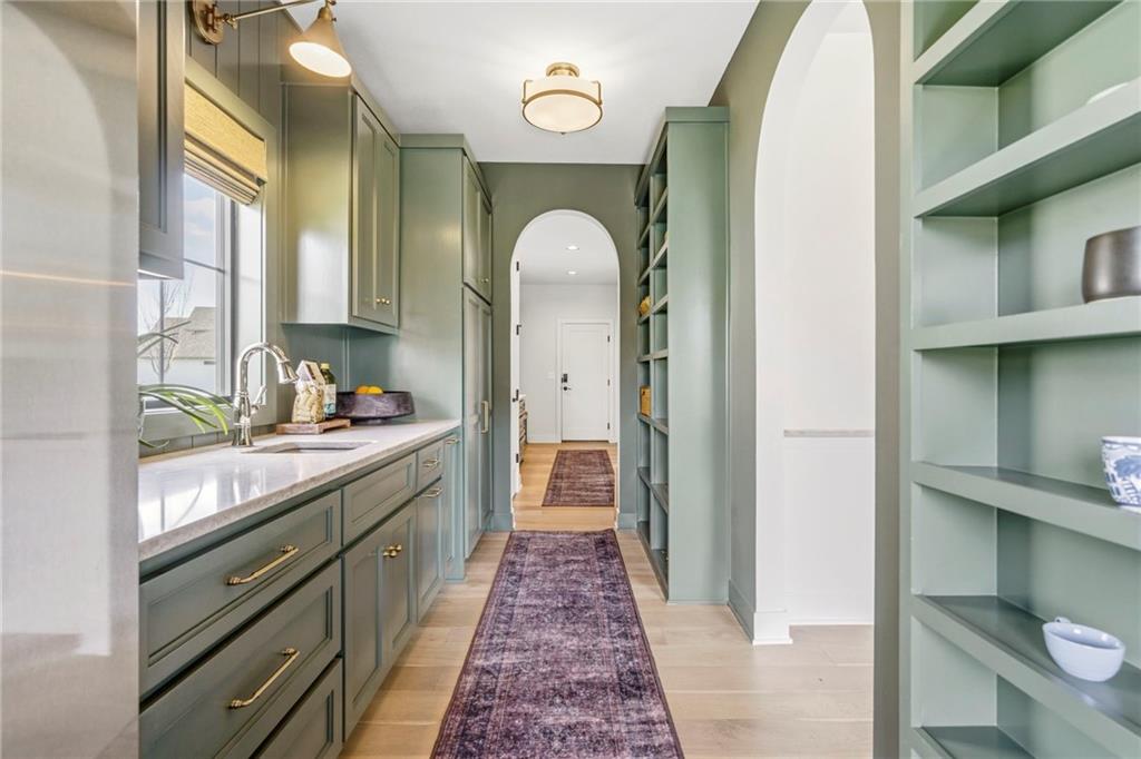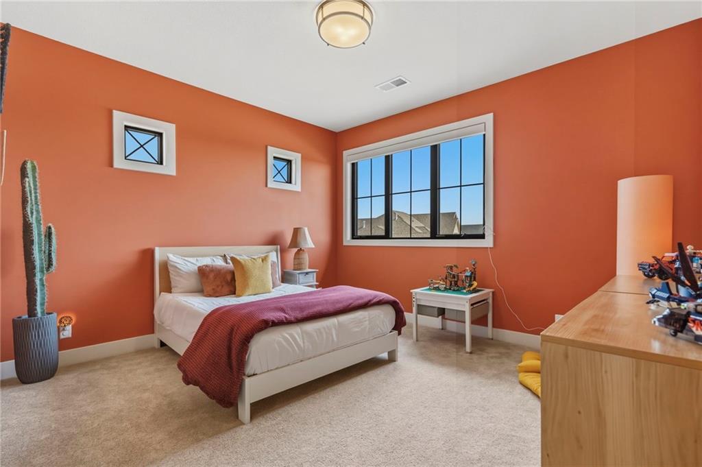The kind of home where the design speaks for itself from the start. Originally built as the Bickimer Roosevelt 1.5-story model for the Parade of Homes, it carries a level of detail and intention that stands apart. Natural light, tall ceilings, and a striking great room with a cast stone fireplace and wood beam ceiling set the tone, while oversized glass doors create a strong sense of arrival. The kitchen is equally considered, featuring Taj Mahal quartzite, a statement plaster hood, reeded cabinetry, and a full butler’s pantry tucked just behind. Arched openings, custom millwork, and a bold sage mud hall bring depth and character throughout. This home goes beyond what is typically seen, with added upgrades including automatic window coverings throughout, a fully fenced backyard, epoxy garage floors, and elevated selections carried across every space! The main-level primary suite offers a quiet, retreat-like feel, while upstairs includes a loft and reading nook. The finished lower level is designed for entertaining with a bar, media space, full bath, and sauna. Set in Century Farms in the Blue Valley School District, the neighborhood offers a clubhouse, fitness center, resort-style pool, pickleball, and more, all just minutes from Bluehawk, parks, specialty grocers, dining, and everyday amenities!