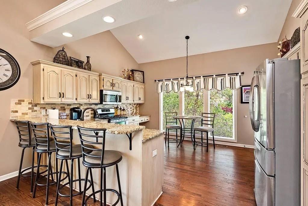 This impressive split-level luxury home is located in the heart of the Zona Rosa Shopping District and just minutes from Kansas City International Airport. Offering premium amenities throughout, the home provides an ideal setup for comfortable living and entertaining. The spacious master suite features a private sitting area, tray ceiling with ambient lighting, and a spa-like ensuite bathroom with double vanity and deluxe steam shower. The two additional bedrooms each include king beds and private bathrooms with walk-in showers. The open living area features a striking gas fireplace beneath soaring high ceilings that create a bright, spacious feel. The gourmet kitchen is fully equipped appliances, granite countertops, a breakfast bar, and flows seamlessly into the dining space. Downstairs, enjoy the custom bar with sink, dishwasher, full-size fridge, and TV, adjacent to a dedicated home gym with treadmill, all-in-one machine, and mirror walls. The highlight is the fully converted garage transformed into an impressive 8-seat home theater with a large screen and premium surround sound. Outside, relax on the raised deck with BBQ or the covered patio with fire pit, overlooking the backyard and Zona Rosa views. All three bedrooms have luxury king beds and private bathrooms. This fully furnished home includes all appliances and furniture and presents a perfect opportunity for an investor. All room sizes, square footage, lot dimensions, utilities and tax info to be verified by buyers agent.