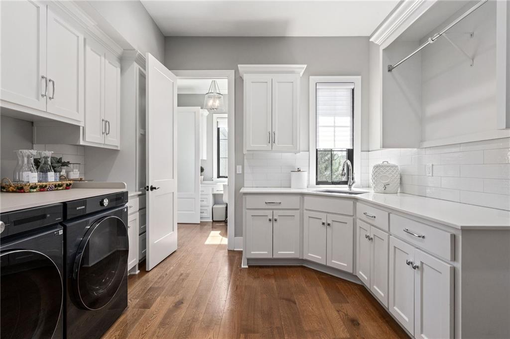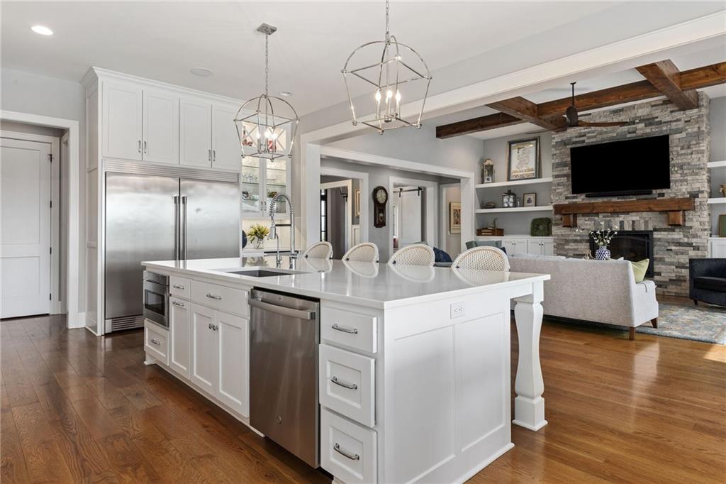 Your DREAM HOME in Mills Ranch in South Overland Park. This estate home offers a truly one-of-a-kind setting. Extensive landscaping ensures incredible privacy on the almost full acre lot adjoining greenspace—a rare find in a suburban neighborhood! Gorgeous 1.5 story home built in 2019 by Todd Hill Homes with high-end design & luxury finishes. Recent upgrades include ALL brand-new, top-of-the-line Pella windows, sliding doors, new carpet, & fresh designer wallpaper in the powder room & primary bedroom. The primary bedroom is a true retreat with ensuite bath featuring a deep soaker tub, & two walk-in closets recently upgraded with custom California Closets. The kitchen features beautiful white cabinets, oversized fridge, & walk-in pantry. Tucked away on this floor is a private office, a spacious laundry room, and a convenient mudroom (or "drop space") with built-in cabinets to hide all the day-to-day "stuff." Get ready to host—this house is perfect for entertaining! Enjoy seamless indoor/outdoor living with massive panoramic sliding doors off the living room. Step outside to the lanai with fireplace, terraced patio, & a top of the line 20x40 saltwater pool! It has all the bells and whistles: a lounge pad, water features, LED lighting—everything you could want! Upstairs, you'll find three spacious bedrooms, each with its own full bathroom. Also upstairs is a massive bonus room that you can use for anything—a second office, game room, or kids' playroom. Finished lower level includes two more bedrooms, 1.5 baths, a custom media wall, pool table area, & seating for everyone to catch the big games. The sleek wet bar features illuminated liquor shelves, a bev fridge, dishwasher, & marble bar that seats six. Don't miss the large, mirrored workout room. This is truly an extraordinary property that guarantees a lifestyle of absolute comfort and luxury. It sits on a quiet cul-de-sac surrounded by other exceptional homes. Don't miss out—schedule your private showing today!