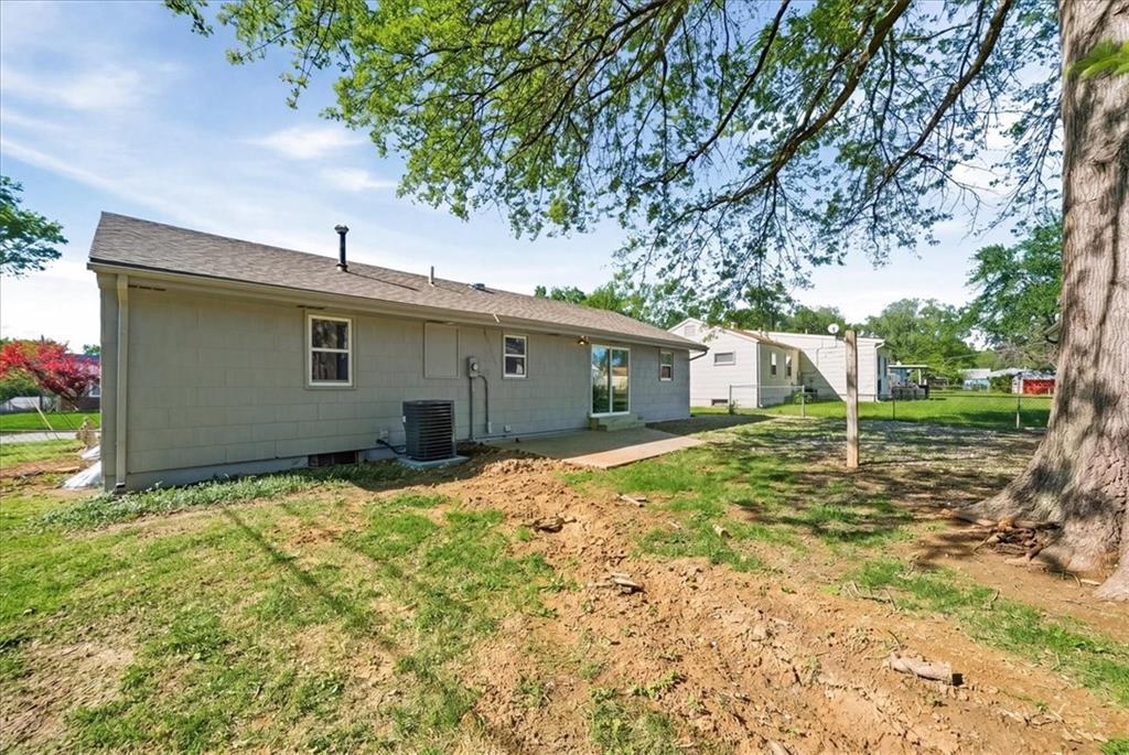 Adorable FULL remodel with all the big-ticket items DONE! From the moment you arrive, you’ll love the fresh exterior paint, all-new interior paint, new windows, and brand-new roof. Step inside to find refinished hardwoods, LVP flooring throughout, and a stunning all-new kitchen featuring granite countertops, gorgeous cabinetry, an island, stainless steel appliances, and a refrigerator that stays. The bathroom has been completely updated with beautiful tile finishes, and new doors add a fresh touch throughout. The finished basement adds valuable living space with a family room, full bath, non-conforming fourth bedroom, laundry, and generous storage. Mechanical updates include a new A/C unit, a 200-amp electrical panel, and an updated plumbing stack. Furnace and water heater appear newer; ages unknown. Bonus: oversized detached 3-car garage/shop with new garage doors, exterior paint, and new roof—perfect for extra storage or projects. This one is truly move-in ready!