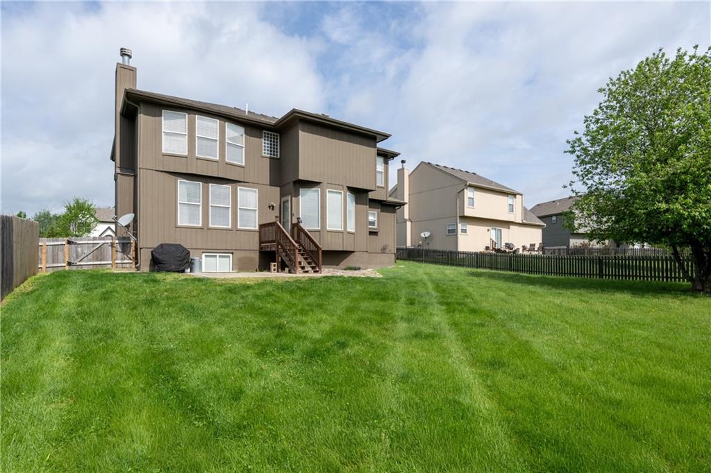 Come and Enjoy this Beautiful Home located in Spring Hill, KS! This Open Floor plan Home is truly an Entertaining Layout with great open space on the main level. Complete with a Dining Room, which could also be your main floor Office. Loads of Granite Countertops in this kitchen with a sizeable Island to serve your favorite summer dinners and desserts! A Large Pantry makes preparing your dinners a breeze! The kitchen has plenty of room for a sizeable dinner table. Wood floors complement the main level with carpet for the Family Room. Wood Burning fireplace with Bookshelves and Cabinets flanking the fireplace. The 86-inch mounted TV stays in place for your convenience!! Of course, as you read about the home you want to know about the big-ticket items…the HVAC was installed in 2021, New 50-gallon water heater with Thermal Expansion Tank installed April 2026, New Sump Pump installed April 2026. Fresh paint, updated lighting, updated carpet are just a few of the other improvements! A lengthy list of additional Updates is Available at the home. Upstairs you will find a sizeable Primary Bedroom that holds a King Size Bed. Large size Primary Bath with double sinks, tub and shower. Walk-in closet. Additionally, upstairs there are two additional full baths for the three bedrooms. The home has a 5th bedroom in the Finished Basement complete with an Egress window. Along with the Bedroom is a finished Rec Room also with an Egress Window. This brings great daylight into the rooms with no need for any additional lighting. Are you the keeper of all things and LOVE your storage space? You will be Thrilled with the 3 different storage spaces in the finished basement. Fresh paint and easy-care flooring make these a great space for family fun! The fenced backyard with a patio allows you to create your summer activities! The Neighborhood pool is at the entrance as you enter into the Subdivision. Welcome to your Next Home!!