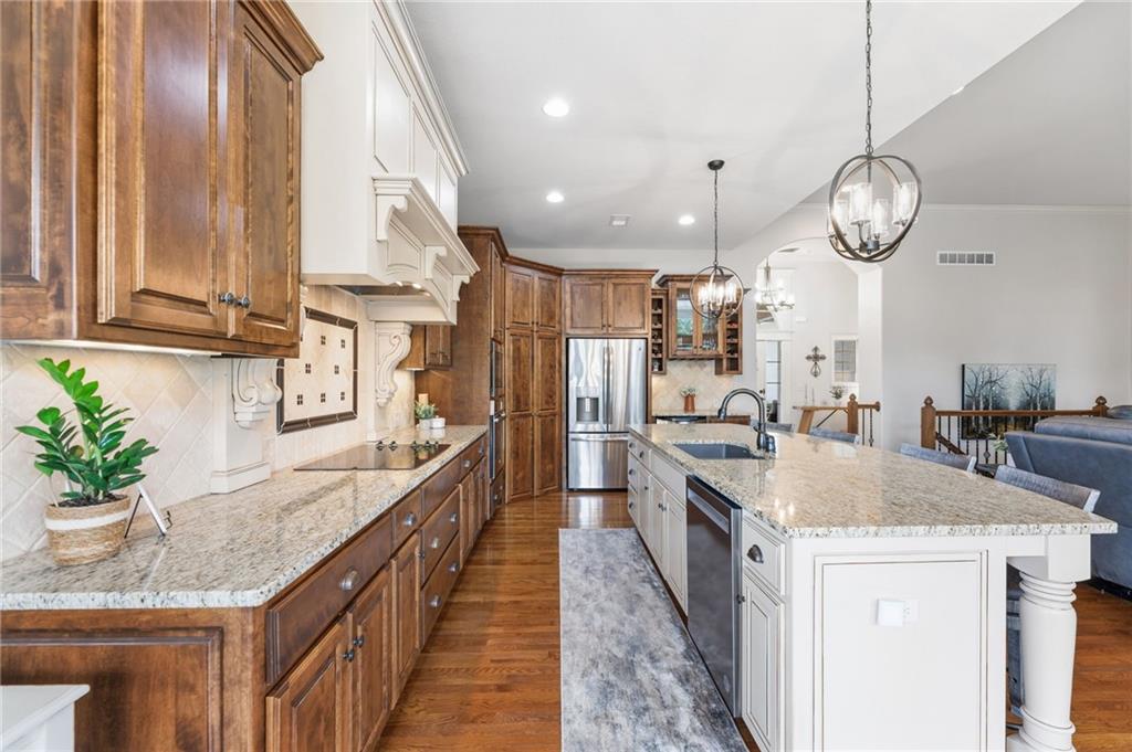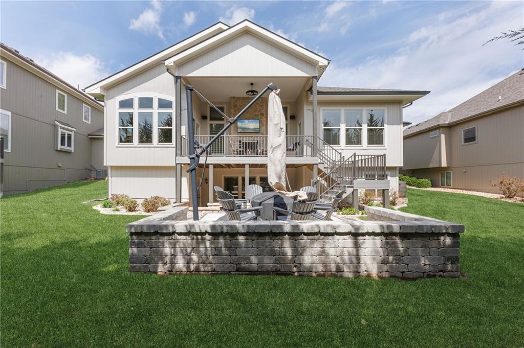 Welcome to this stunning former model home by James Engle Homes, showcasing the highly sought-after Emery reverse floor plan and loaded with gorgeous upgrades throughout. This beautifully designed 4-bedroom home offers the perfect blend of luxury and functionality. The main level features a spacious, light-filled great room with rich wood flooring and a striking see-through stone fireplace that extends to the covered, maintenance-free deck—creating a warm and inviting atmosphere both indoors and out. The gourmet kitchen is equally impressive, complete with granite countertops, double ovens, and a generous walk-in pantry, making it perfect for everyday living and entertaining. The luxurious primary suite offers a private retreat with dual vanities and a custom-tiled walk-in shower. The finished walkout/walkup lower level expands your living space with a large rec room, wet bar, two additional bedrooms, and a full bath—ideal for guests or entertaining. Step outside to enjoy exceptional outdoor living, including the covered deck with fireplace access and a beautifully designed stone patio with a fire pit, all backing to a serene tree line for added privacy. Additional highlights include a newer roof (just 2 years old) and access to fantastic neighborhood amenities, including a community pool. This home truly offers comfort, style, and convenience—don’t miss your opportunity to make it yours!