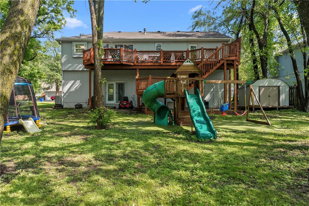 Move-in ready and full of charm! This awesome 3-bedroom, 3 full bath home offers an open, spacious floor plan with soaring vaulted ceilings and plenty of natural light. The kitchen features stainless steel appliances, a walk-in pantry, and easy flow into the main living areas—perfect for everyday living and entertaining. Enjoy the convenience of first-floor laundry and a private primary suite with direct access to a stunning multi-level custom deck—also accessible from the kitchen—creating the perfect indoor/outdoor lifestyle. The large backyard offers plenty of space to relax, play, or host gatherings. The finished lower level adds even more living space, complete with a bar area and a full bathroom—ideal for entertaining, guests, or additional living quarters. Major updates include a roof and HVAC system that are only less than 8 years old, offering peace of mind for years to come. Located in a great area close to grocery stores, restaurants, and shopping, this home truly has it all—space, style, and convenience. Agent and buyer to certify taxes, schools etc.