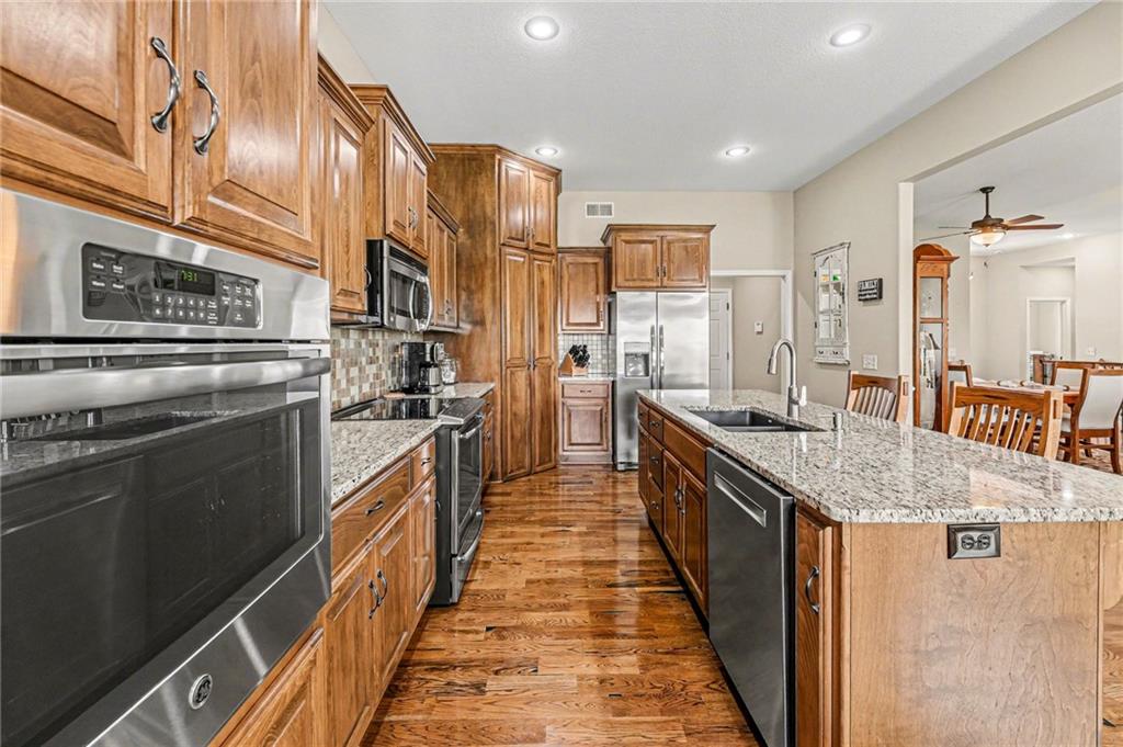 METICULOUSLY MAINTAINED, CUSTOM Reverse 1.5 w/FINISHED LL! So many beautiful features including BUILT IN HUTCH in FORMAL DINING ROOM & WET BAR in LL. Wood flooring, CUSTOM CABINETS & TILE, fireplace, MAIN FLOOR LIVING, main floor laundry & drop zone & so much more! NEW ROOF, GUTTERS & GUTTER GUARDS! Water heater replaced in 2021, sump pump 2023. HVAC professionally serviced twice a year. TONS OF STORAGE! This 1 OWNER HOME has been loved and cared for and is ready for it's new owner, MOVE RIGHT IN!! COVERED DECK & SPACIOUS PATIO, backs to walking trail! BRENTWOOD CROSSING, LIBERTY SCHOOLS, HURRY!!