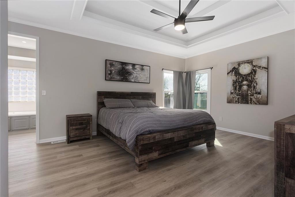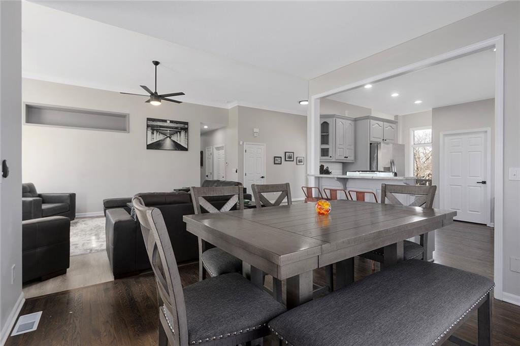 Rare find! Beautifully renovated 5 bed, 3 bath home in the desirable Summit Wood subdivision, located within the highly sought-after Lee’s Summit School District. This home offers a spacious and open floor plan with soaring ceilings, abundant natural light, and a stunning great room featuring a gas fireplace and large windows. The kitchen is designed for both everyday living and entertaining with solid surface countertops, stainless steel appliances, ample cabinetry, and great workspace. The adjoining dining area flows seamlessly, creating a functional and inviting layout. The main floor primary suite serves as a private retreat with a spa-like en-suite bath featuring dual vanities, a soaking tub, and separate shower. Additional bedrooms provide flexibility for guests, office space, or a growing household. Main level laundry adds convenience and ease of living. The finished lower level offers a large second living area, perfect for entertaining, a media room, or recreation space, along with additional bedrooms and full bath. Enjoy great curb appeal, a spacious 3-car garage, and a well-maintained yard. Located in Summit Wood, a well-maintained neighborhood with an established HOA, and convenient access to I-70, shopping, dining, and the greater Kansas City metro.