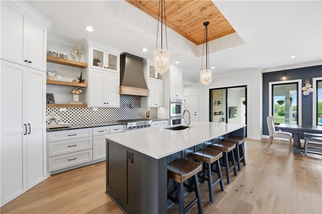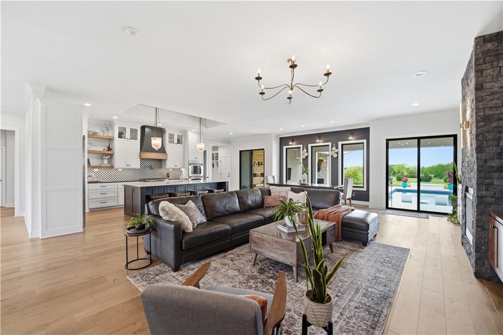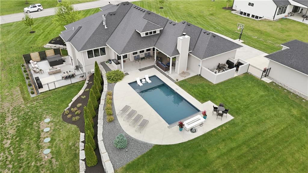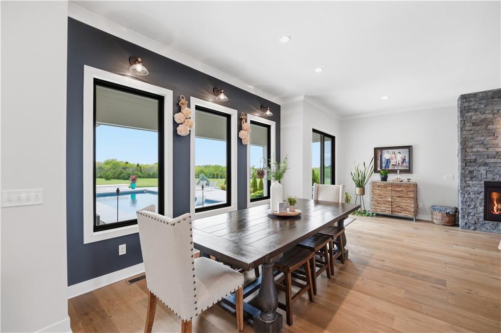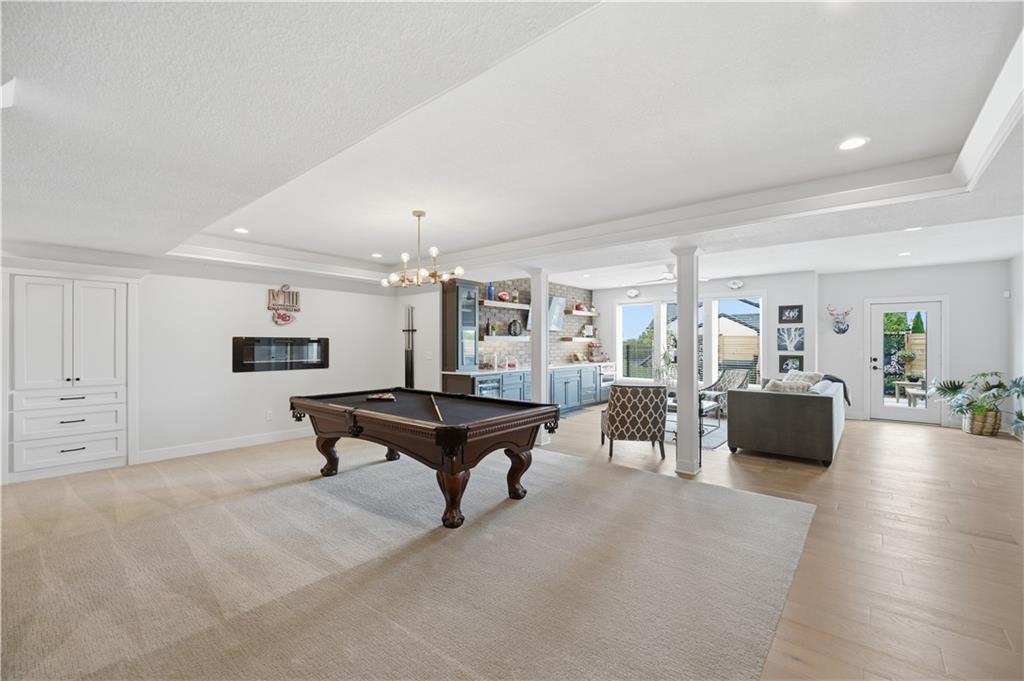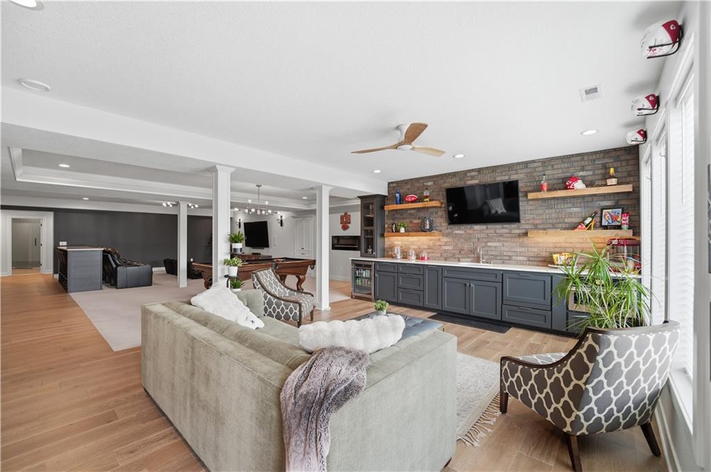 Welcome to Mulberry Hill Estates-where craftsmanship, intention, & luxury come together in this one-of-a-kind home built by Anderson Homes as the builder’s personal residence. Situated on just over 2 acres, this custom estate showcases elevated design & high-end finishes throughout. From the moment you enter, you’ll notice 8-foot doors, crown molding, & real iron welded railings that set the tone for the quality found throughout. The living room features dual fireplaces, custom sconces, & layered lighting, creating a warm yet sophisticated space ideal for relaxing & entertaining. The kitchen is the centerpiece of the home, anchored by a massive 10’ island with storage on both sides, custom cabinetry, quartz & granite countertops, & a marble mosaic backsplash. Enjoy top-tier Viking & Thermador appliances, a gas range with pot filler, paneled dishwasher, & three pantry spaces, including a beverage room with butcher block counters & wine fridge—perfect for hosting. The primary suite offers a true retreat with a feature wall & spa-like bathroom featuring a soaking tub, oversized walk-in shower with rain head, heated floors, & a custom closet with built-ins. The main level continues with a spacious laundry room that can double as a home office, along with two additional bedrooms & bathrooms. The lower level is designed for lifestyle & entertaining, featuring hardwood floors with vapor padding, surround sound, a full gym, second laundry setup, & a lounge area that opens to a private courtyard. You’ll also find two additional bedrooms & a full bath with heated floors. Outdoor living shines with a mineral pool featuring a tanning ledge, auto cover, & gas fire feature, plus a built-in grill & wood-burning fireplace. A 3-car attached garage & separate heated/cooled 3-car tandem detached garage with pool house & full bath complete this exceptional property. A rare opportunity to own a builder’s personal home with unmatched detail & design.
