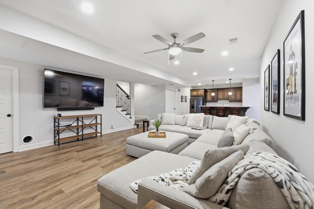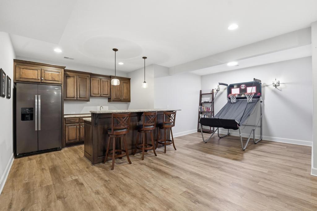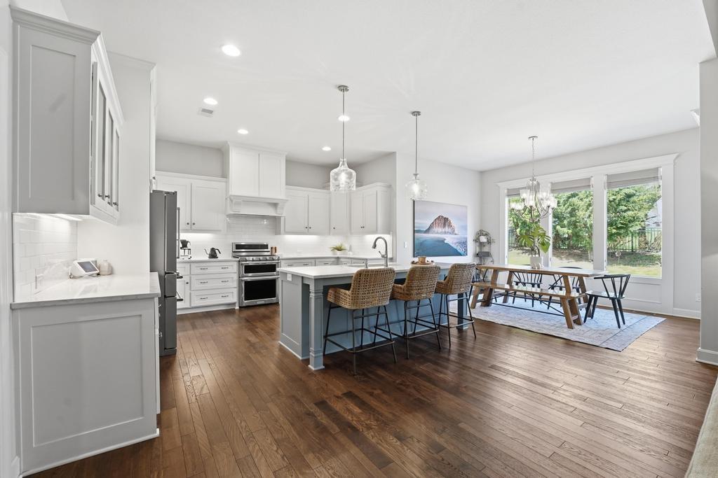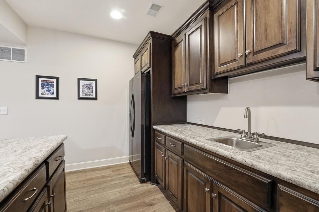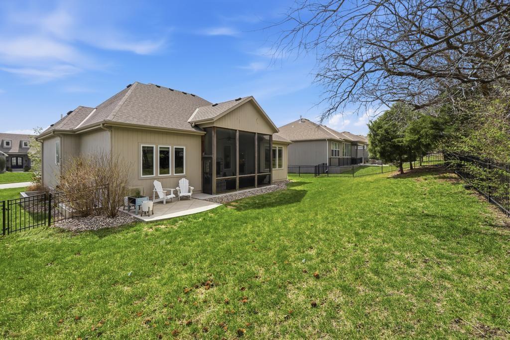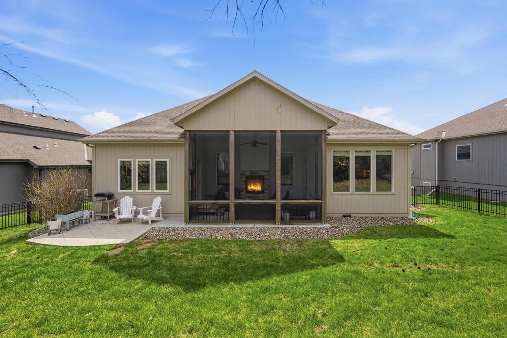 Why wait to build when you can have a well-maintained home now! Main level living and so much space in this open floor plan! 2 bedrooms, 2 full bathrooms, and laundry ALL on the main level. Large kitchen island and MASSIVE walk-in pantry. Laundry room connected to primary closet. Huge family room with a wet bar in the basement. Soaring ceilings and a stunning see-through fireplace create a spacious, inviting living room. The covered back patio with built-in fireplace is perfect for relaxing and/or entertaining. Lined with trees, the backyard tucks in the home and creates an even more peaceful space. Sitting at the back of the neighborhood with no thru traffic, this home gives the vibe of country living…but in the city! Enjoy the neighborhood’s beautiful walking trails, basketball court, pond, and splash pad! Close to schools, shopping, dining, golf courses, and highways there’s something for everyone!