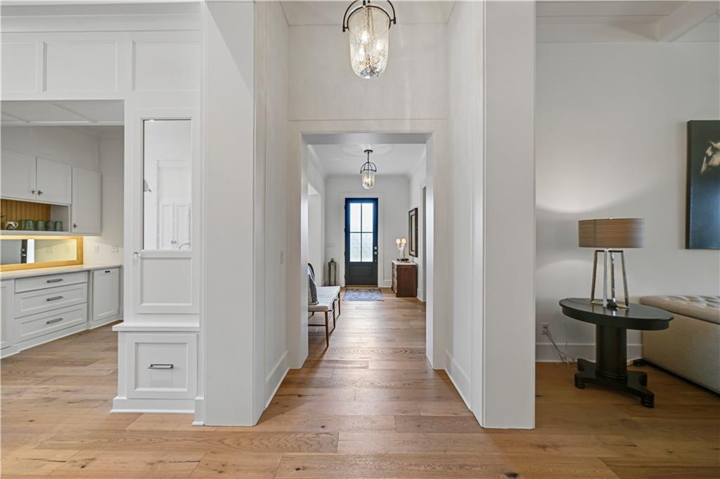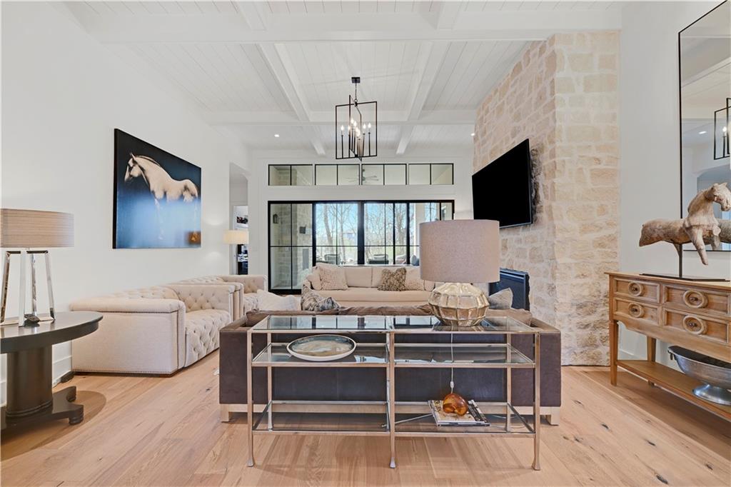 Luxury living in the sought-after **Blue Valley School District** — where location truly is everything. Builder's personal residence, situated on **2 scenic acres of beautifully treed, fenced property**. This stunning former spec home offers 4 spacious bedrooms and 4.5 baths in a beautifully designed ranch floor plan. The main level features a luxurious primary suite complete with separate his-and-hers bathrooms for the ultimate private retreat, plus a convenient laundry room located within the primary suite. Each additional bedroom includes its own en-suite bath, offering comfort and privacy for family and guests. The kitchen is a showstopper, showcasing a large statement island, gas cooktop, double sinks, premium Thermador appliances and an spacious butler's pantry — perfect for entertaining. A second laundry room is thoughtfully located in the mudroom just off the kitchen, adding everyday functionality. The home includes a 2-car attached garage plus a 2-car detached garage connected by a porte cochere. A secondary stairwell in the garage provides direct access to the expansive 3,500 sq ft unfinished daylight basement — ready for you to design and customize to your needs. The charming carriage house offers ideal space for a private office, guest quarters, or multi-generational living. Enjoy peaceful views of nature from the covered patio just off the living room. All this, just minutes from highways, shopping, and restaurants — a rare combination of luxury, space, and convenience.